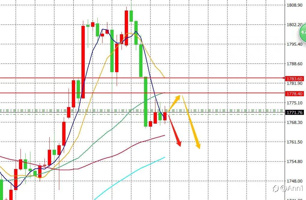 黄金4小时图: 思路:1778-1783空,防守1786,目标1760-1750 黄金如期下跌反弹继续空,美元站稳上行,毕竟美联储加息一年让全球美元回流接盘和缩表还在延续,最终不是为了让美元走熊或贬值道路的。美元强力上涨推动...