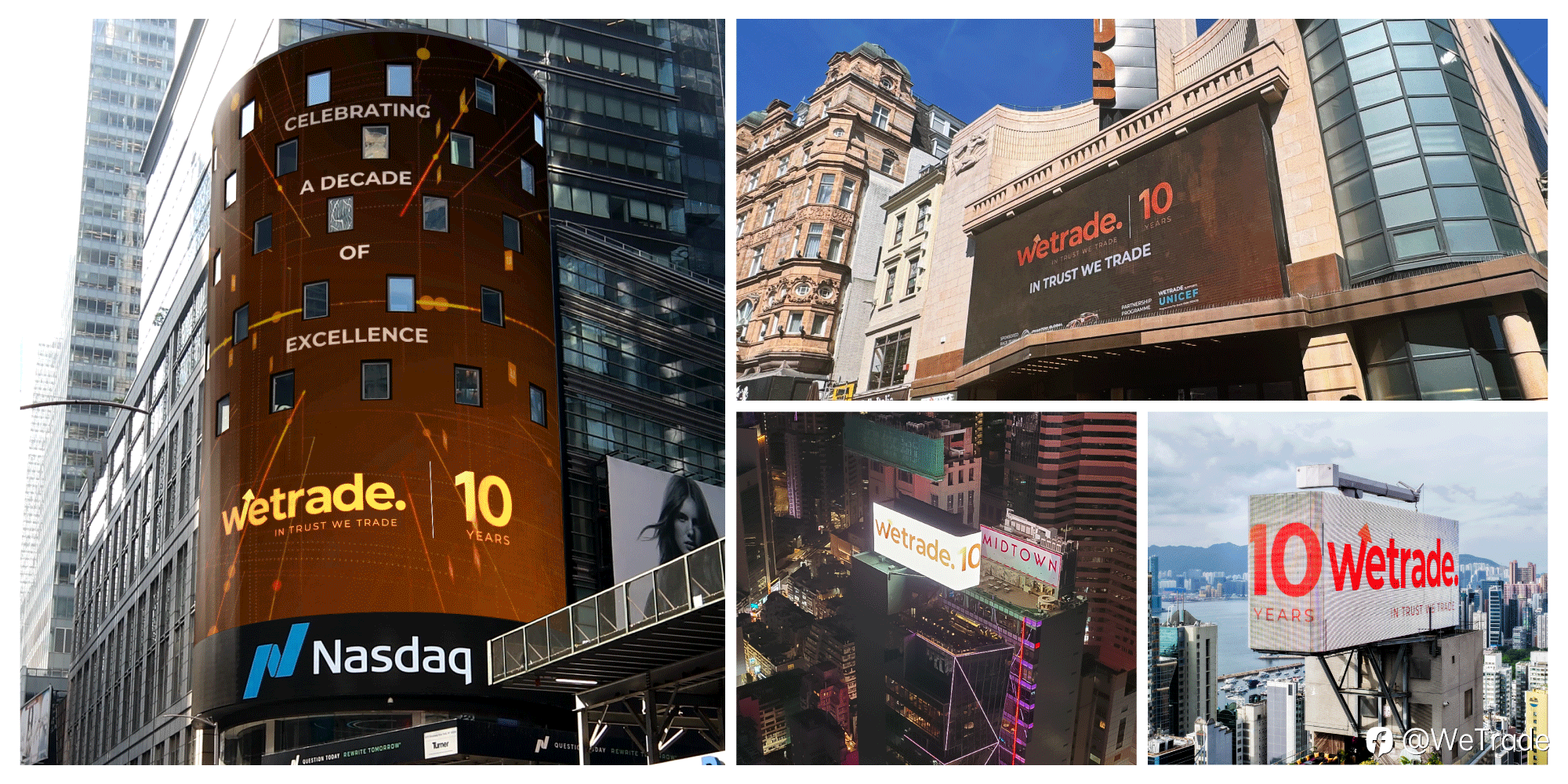 时间向前,答案在路上。2025年,不仅是一段时间的刻度,更是一段与全球客户共同走过的旅程。这一年,我们回望初心、夯实根基,也不断突破边界;这一年,每一次进步,都源自您的信任与陪伴。 十年同行,世界见证 2025 年,WeTrade 迎来成立 十周年的重要里程碑。我们选择用更开放的方式,与世界、也与客户共同庆祝这一刻。从纽约纳斯达克广场的金融心脏,到伦敦莱斯特广场的人文坐标,再到香港维多利亚港的璀璨夜色——WeTrade 的十周年,被点亮在全球金融版图的核心位置。这不仅是一次庆祝,更是一次郑重的致意:感谢十年来,始终选择与 WeTrade 并肩