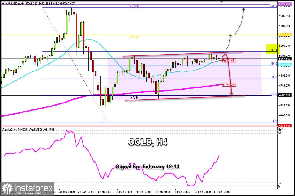 Sinyal trading untuk GOLD (XAU/USD) pada 12-14 Februari 2026: jual di bawah $5.120 (61,8% - 8/8 Murray)