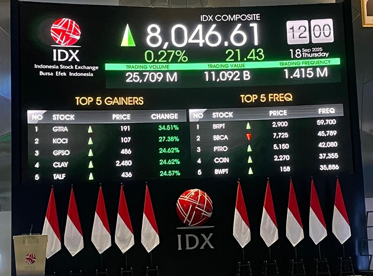 IHSG Sesi I Rebound 1,57 Persen ke 8.047, LRNA-SOHO Puncaki Top Gainers