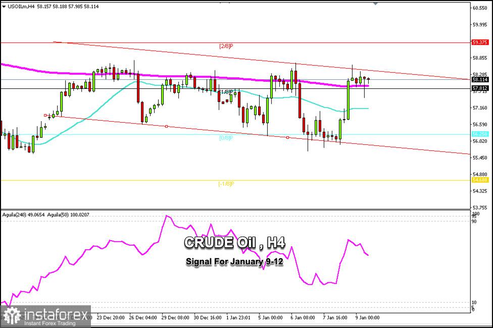 Sinyal Trading untuk MINYAK MENTAH pada 9-12 Januari 2026: beli di atas $57,80 (EMA 200 - Murray 1/8)