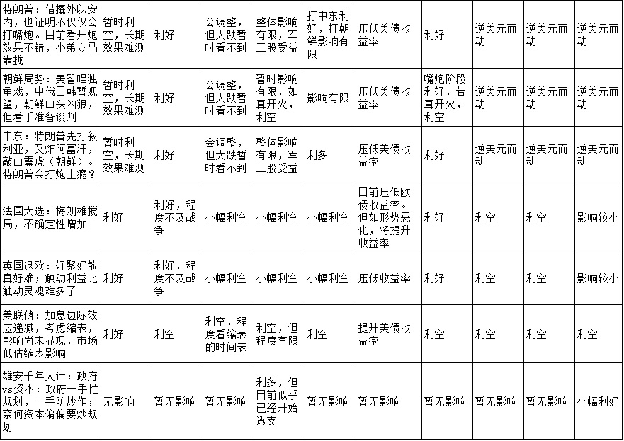 一张表梳理近期纷繁风险影响因素和金融资产关系。
