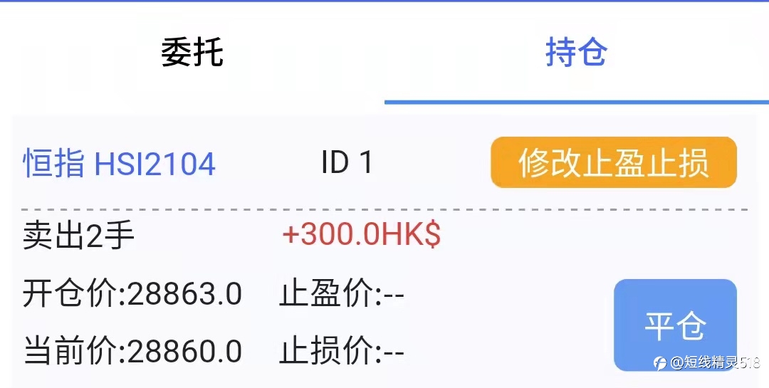 4.1上午分析团队技术恒指建议28591附近果断空单,2手盈利5300港币=4467人民币,指数波动比较快,如果有跟上的,一定要注意利润保护,稳中求胜,以利润为最终目标,你是否能跟上 #黄金#
