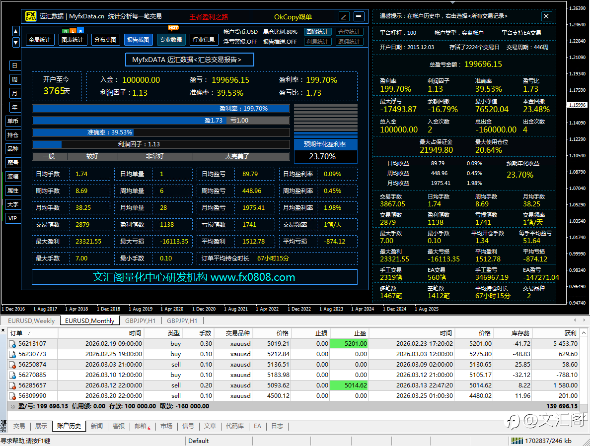 —— 文汇阁量化|给想要更稳、更省心的人🟧先说清楚:这不是“预测行情必胜”的EA。这是一套工程化套利系统:抓结构偏离 → 成对对冲进场 → 等回归落袋 → 风控兜底。你把它当成“自动化执行的交易工具”,而不是“包赚钱的神机”。🟦一、你是不是也有这种交易痛感?很多人亏钱,不是不会看K线,而是被“方向交易的天然缺陷”折磨:🔥明明看对方向,拿不住,回撤一来就跑🔥止损刚被扫,行情立刻反转,心理直接裂开🔥日内波动越大,越想操作,越操作越错🔥一旦陷入连续亏损,开始加仓、扛单、赌反弹,最后把账户打穿🔥最要命的是:你每天都在做决定——情绪、疲劳、焦虑,让错误概率越来越高🟩方向交易很多时候不是你