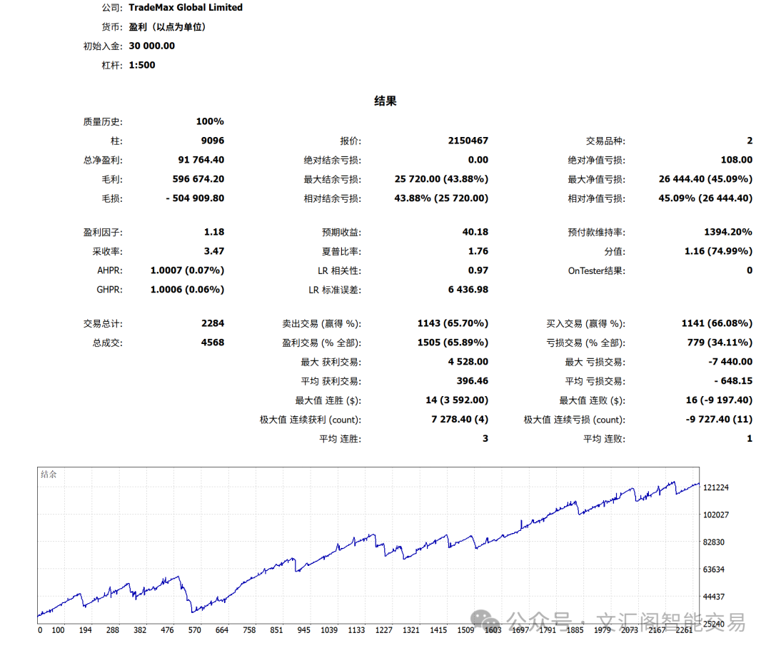 不是赌方向,不是靠情绪,更不是拍脑袋。价差套利,本质上是一种用规则去约束波动、用结构去管理风险、用纪律去放大利润的交易方式。 文章围绕价差套利展开,主线很清楚:它不是靠猜涨跌赚钱,而是通过捕捉相关标的之间的相对价格偏离,在失衡后等待修复,从而提取稳定的统计优势。相比普通单边交易,价差套利更强调结构、规则、风控和长期复利,而不是情绪化判断和短期暴利。 文中结合一组真实回测数据,对策略进行了拆解。核心数据包括:初始资金 30000,总净利润 91764.40,总交易 2284 笔,胜率 65.89%,