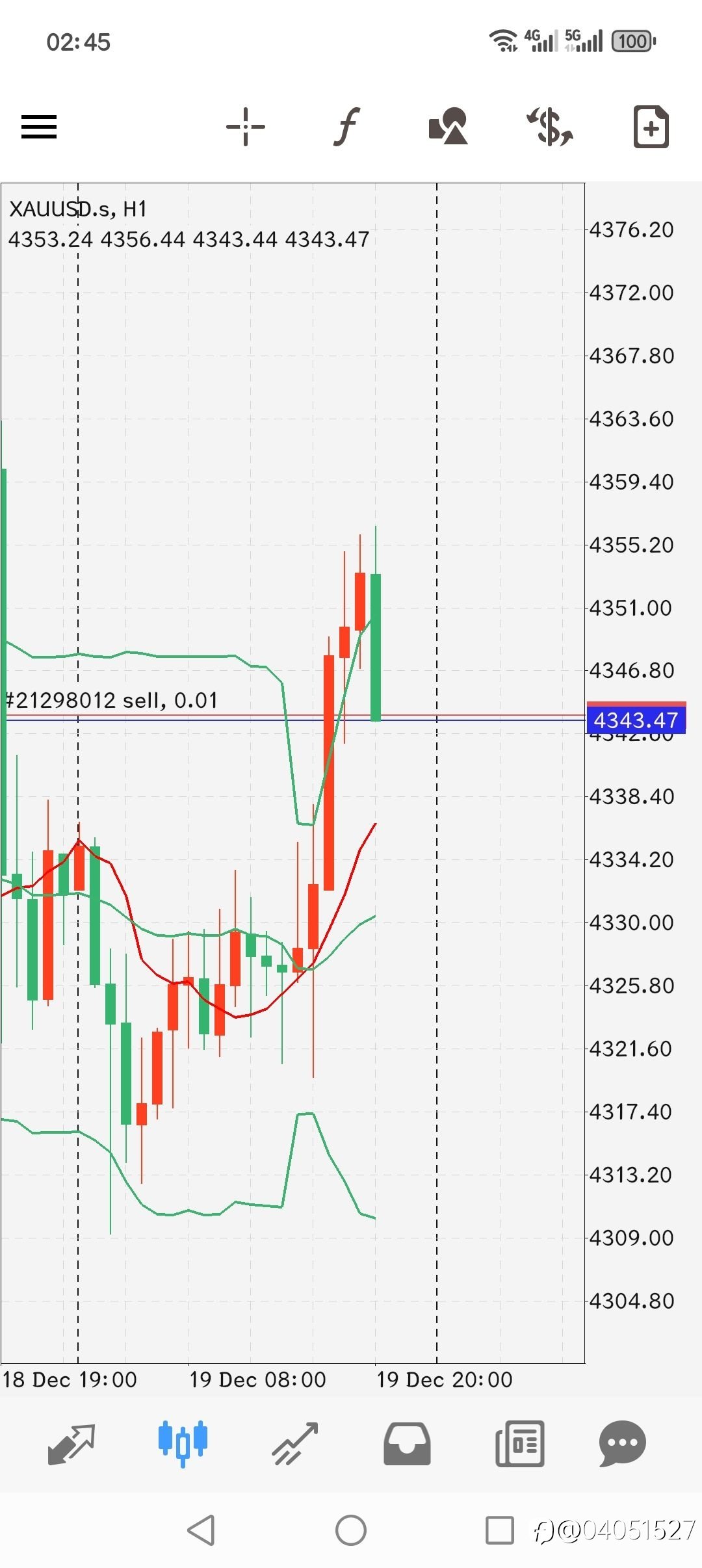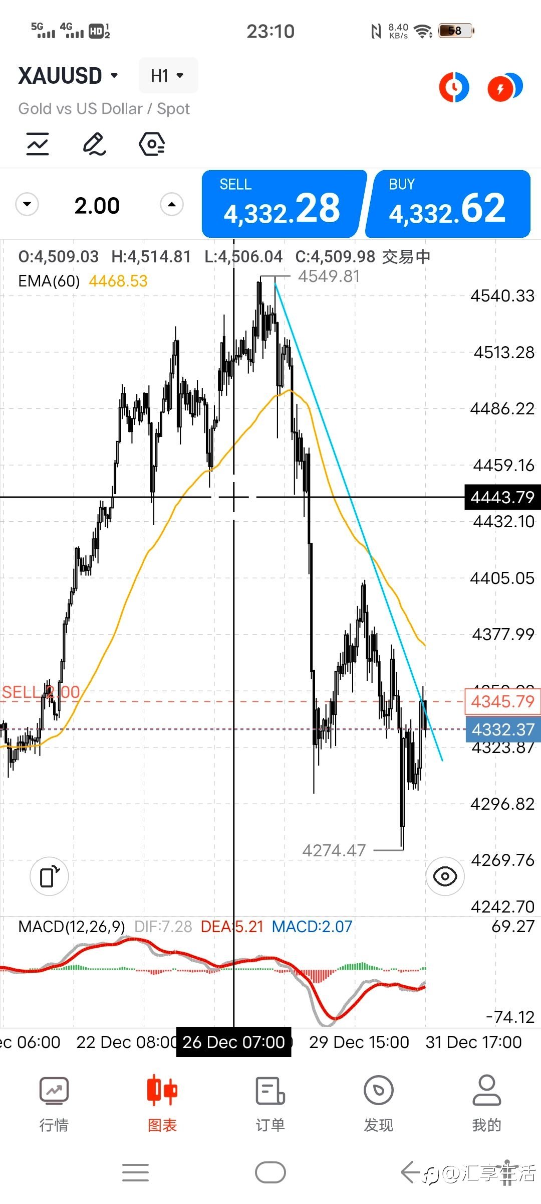 - 04051527 :昨晚做这个空单,当时的止损设三个点,可是最后不知怎么鬼使神差的就一直在扛,最多的时候亏了十几美金。然后我看涨不上去了(4360),止损挪到4360,就去打游戏了,↓4343,期待快点↓,又↑上去了,心里想着涨到60...