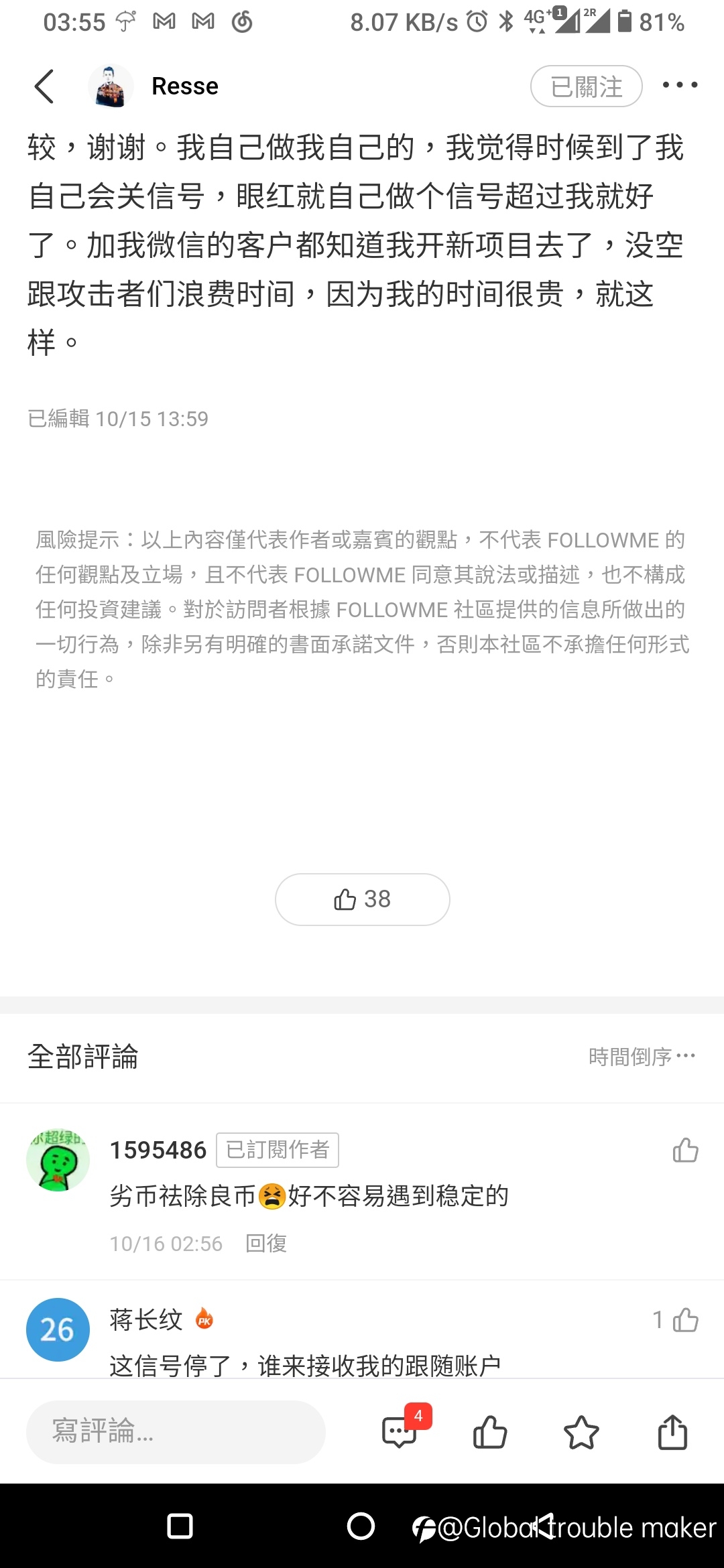 有个毛病,每次股市大跌吧,必须要视奸一下股神。