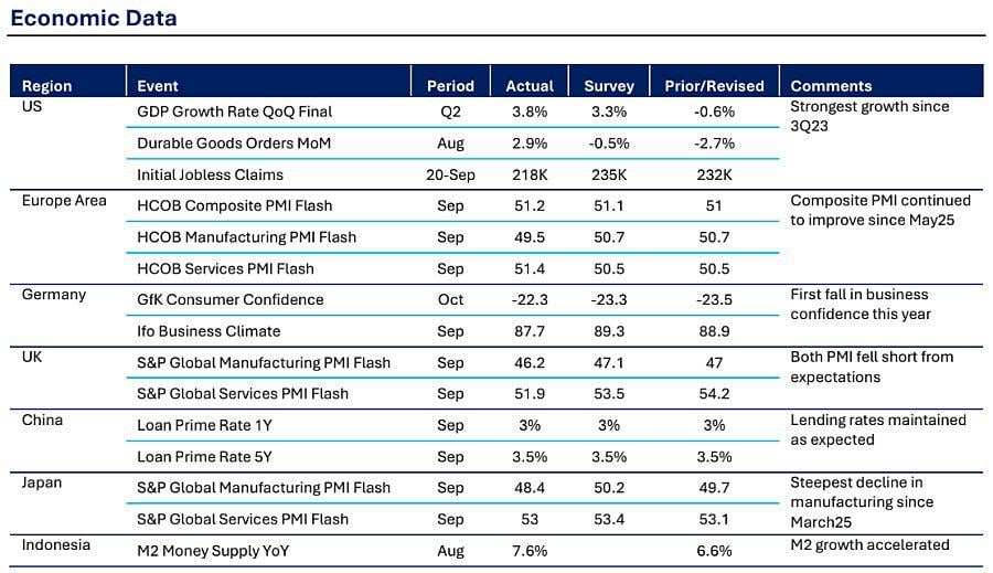 IHSG naik 0,73% ke 8.099 dan sempat mencatat rekor penutupan 8.125 serta intraday 8.169, investor asing mencatat arus masuk USD272 juta dalam sepekan.Rupiah melemah ke sekitar Rp16.700 dipicu kuatnya data AS, defisit fiskal melebar, dan pemangkasan suku bunga BI.Ashmore menilai BI akan tetap menjaga