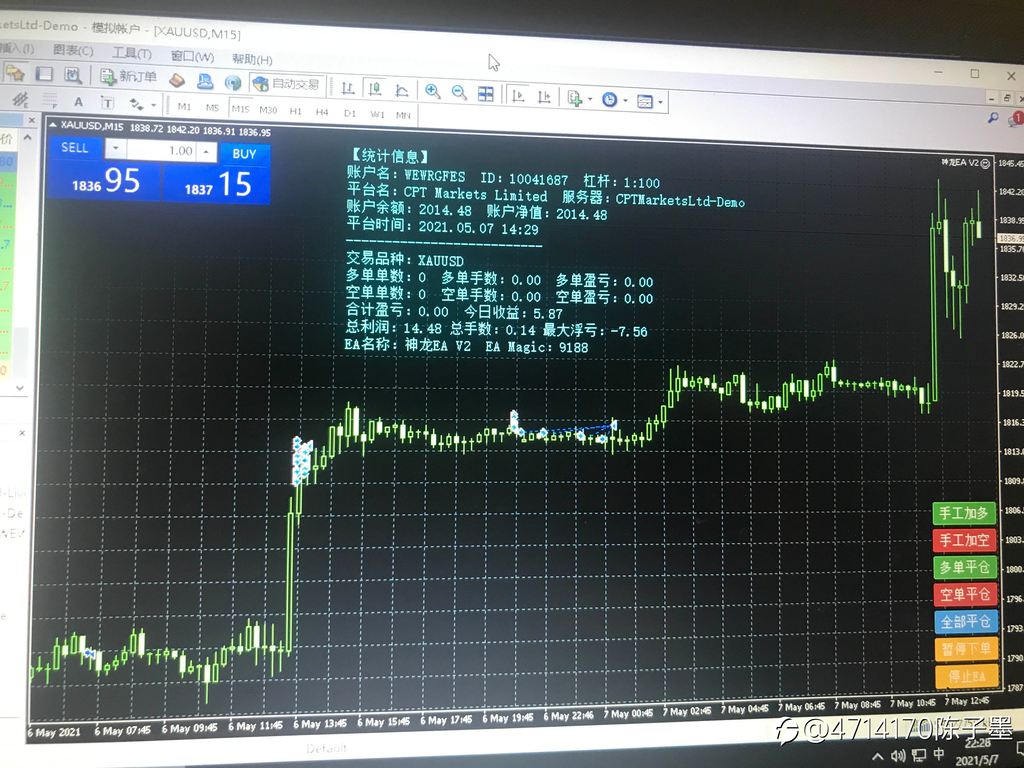今天回测ea2020.1月-2021.4月份。 本金3000。盈利11000 最大回撤 1600。盈亏比4.19 应该还可以吧
