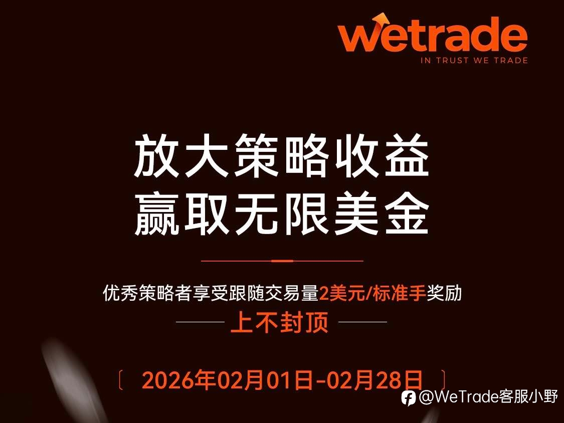 链接顶级信号,放大策略价值 在 WeTrade 跟单社区 策略者享受 每标准手最高 2 美元奖励,上不封顶 让实力被看见,让交易更有回报 📅 活动时间:2026年03月01日–03月31日