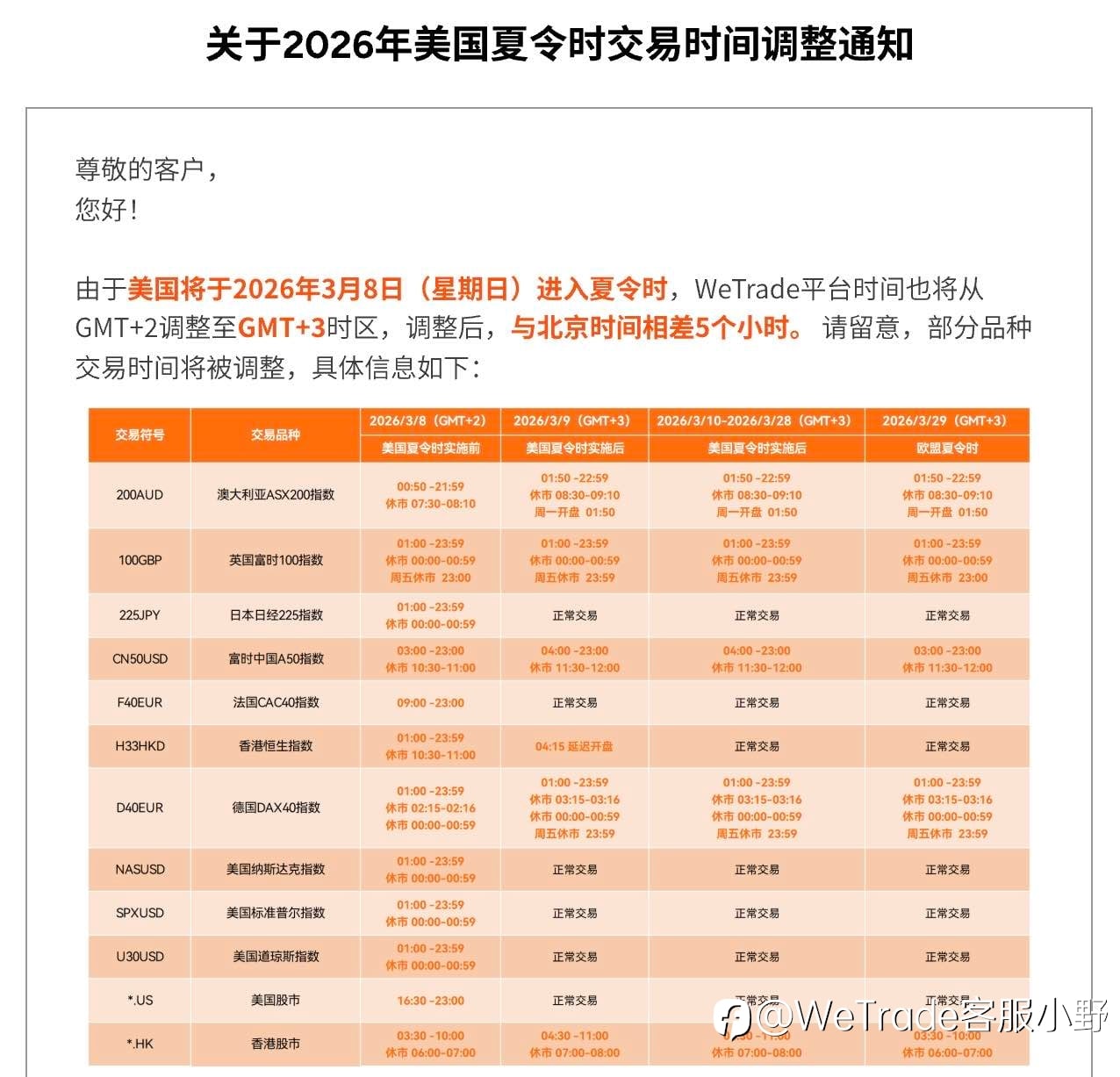 关于2026年美国夏令时交易时间调整通知