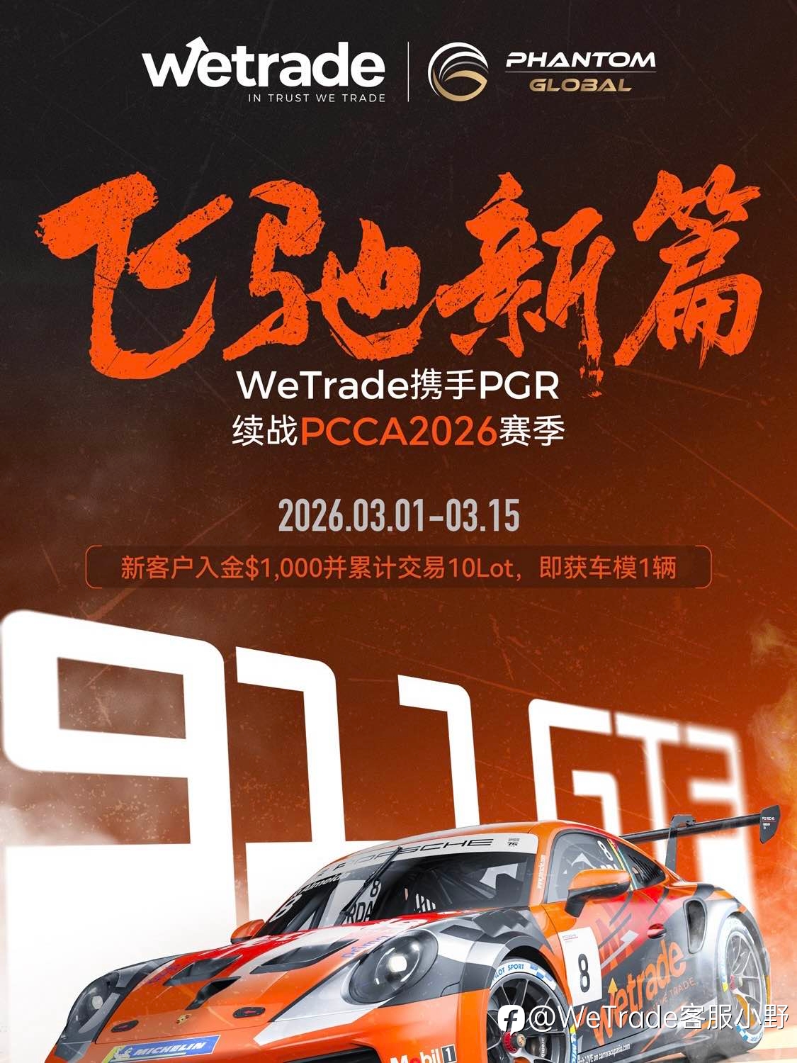 🏁WeTrade携手PGR 续战PCCA 2026赛季 🚗💨 飞驰新篇,邀你一同赛道同行! 🎁新客户专属福利: 🗓 2026.03.01 - 2026.03.15 ✅入金 💵$1,000 并累计交易 📈10Lot 🎁即...