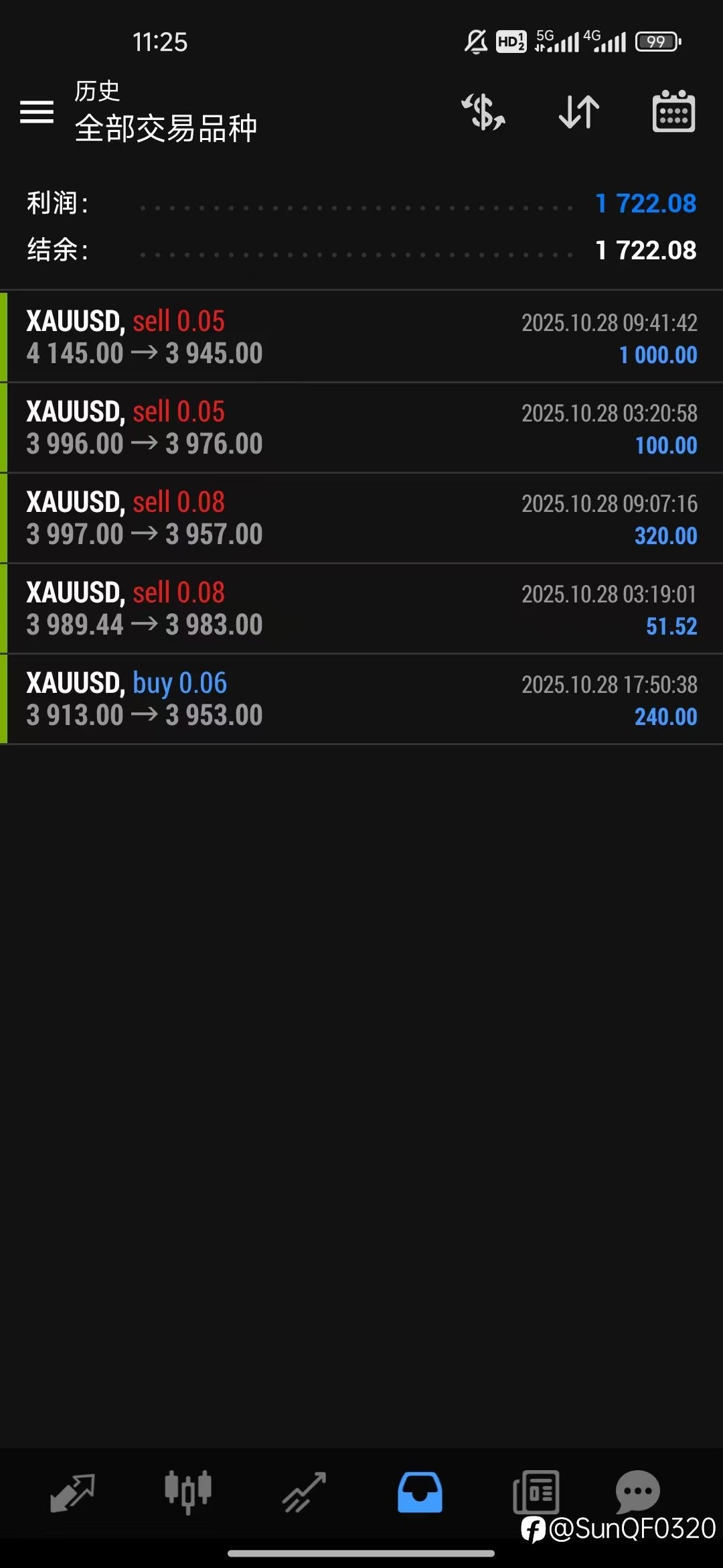 SunQF0320 关注 16 关注 100 粉丝 84 人气 ··· 69 访问 04 May 2021 入驻 中国大陆 纯手动,需订阅请佳昵称 稳定月化20%~30%,2k是1倍手数回撤控制1.5k内,利三七。详细可细聊 慢就是快,快就是慢,经历过快速起来快速下去的账户,最终选择稳定慢慢增长的方式