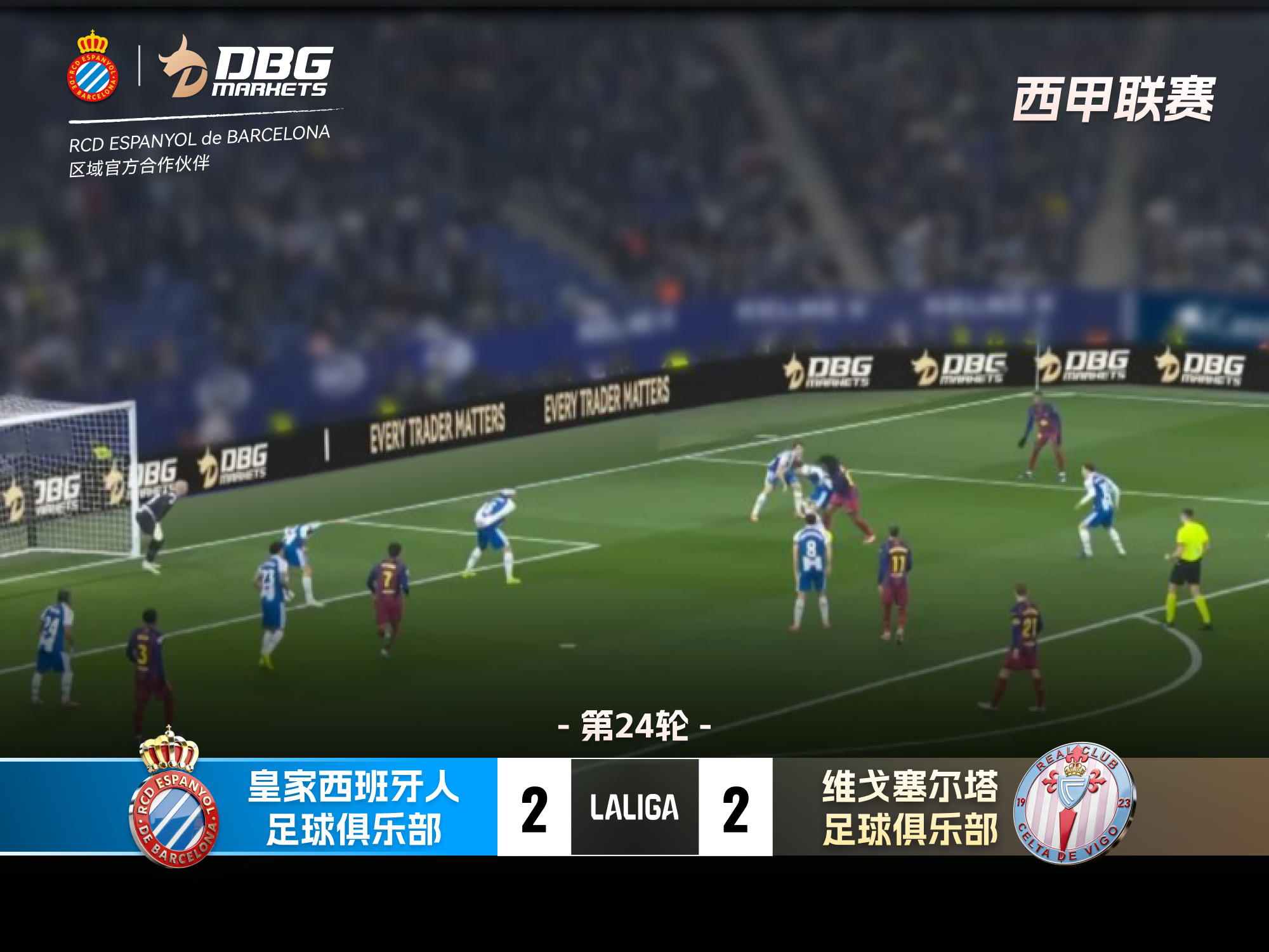 2026年2月14日,皇家西班牙人足球俱乐部迎来本赛季第四个主场比赛,对阵 RC Celta de Vigo。作为区域官方合作伙伴,DBG Markets与球队一同见证了这场充满激情与韧性的较量。 比赛开局,客队率先取得进球,给西班牙人制造了不小的压力。但球队并没有因此退缩,而是迅速调整状态,积极组织进攻并成功扳平比分。下半场,双方继续展开激烈对抗,西班牙人再次在落后时展现出顽强的斗志,凭借持续的努力和团队配合再次追平比分。 整场比赛,西班牙人展现了坚韧与团结。无论是在防守端的坚决拦截,还是进攻端的持续推进,都体现了球队不放弃的态度和团结一致的态度。最终,双方以2:2握手言和,但西班牙人展现出
