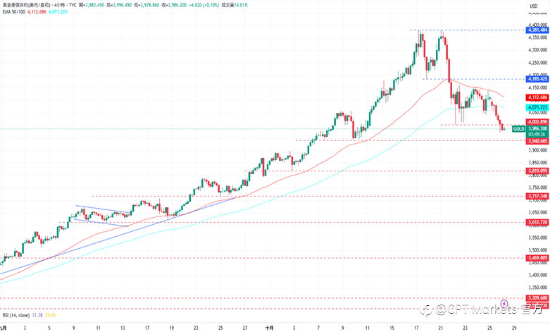 CPT Markets 黄金与原油评析:黄金跌破4000美元,中美贸易谈判出现进展!原油需求持续低迷,油价仍承压下跌!