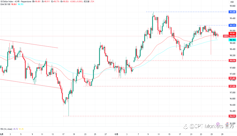 CPT Markets外汇评析:美元指数微幅收高,中美双方即将会晤!道琼指数创下历史新高,市场对降息保持乐观!