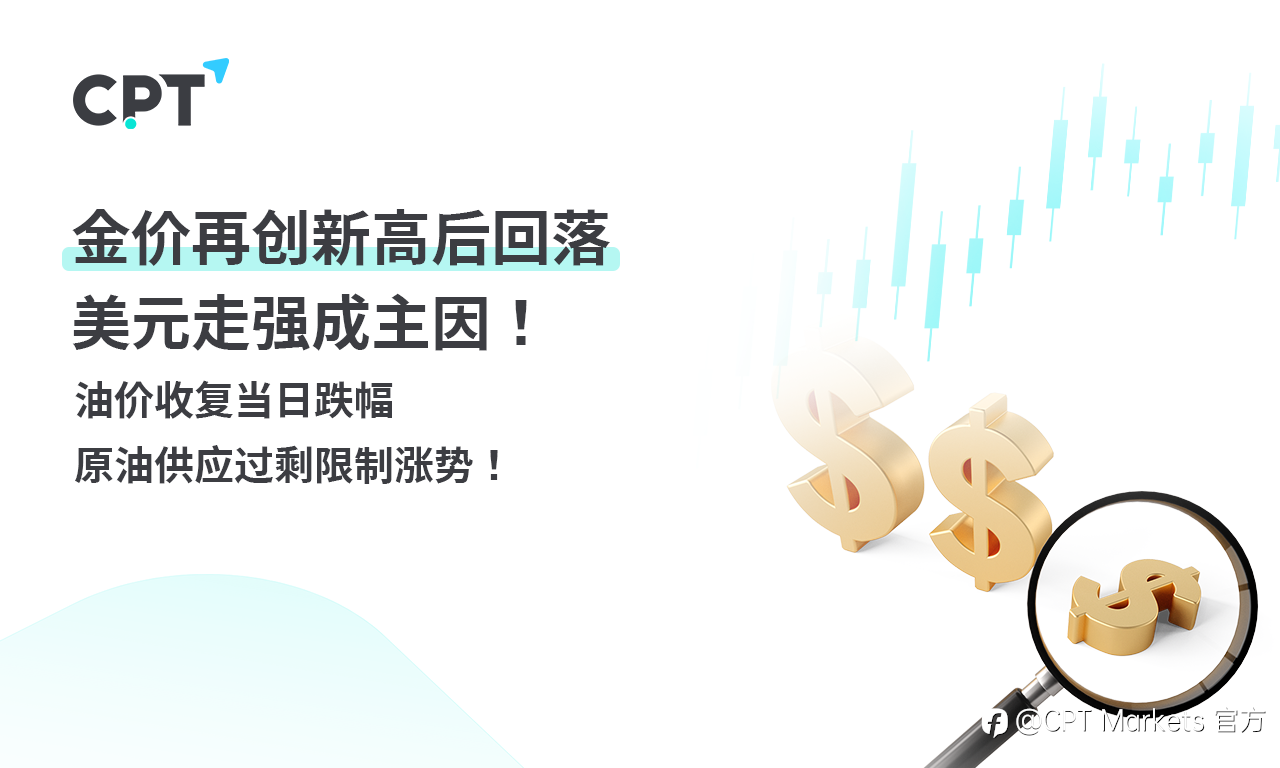 CPT Markets 黄金与原油评析:金价再创新高后回落,美元走强成主因!油价收复当日跌幅,原油供应过剩限制涨势!
