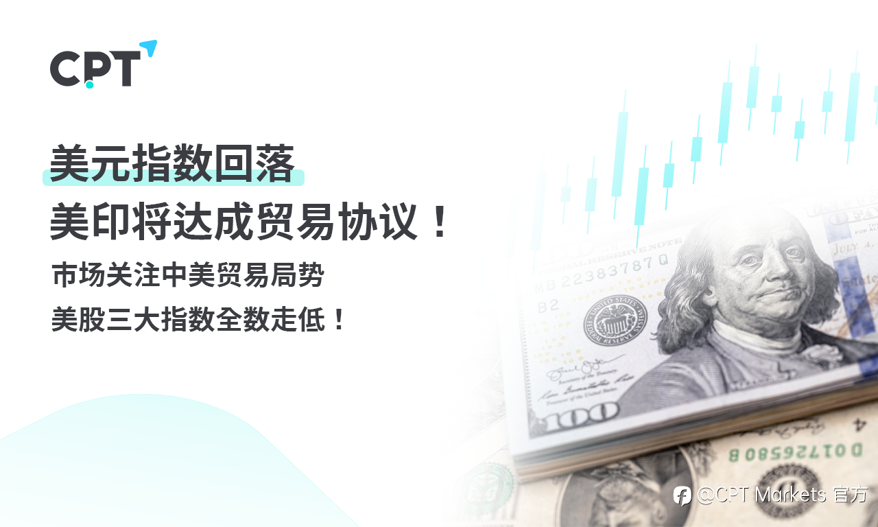 CPT Markets外汇评析:美元指数回落,美印将达成贸易协议!市场关注中美贸易局势,美股三大指数全数走低!