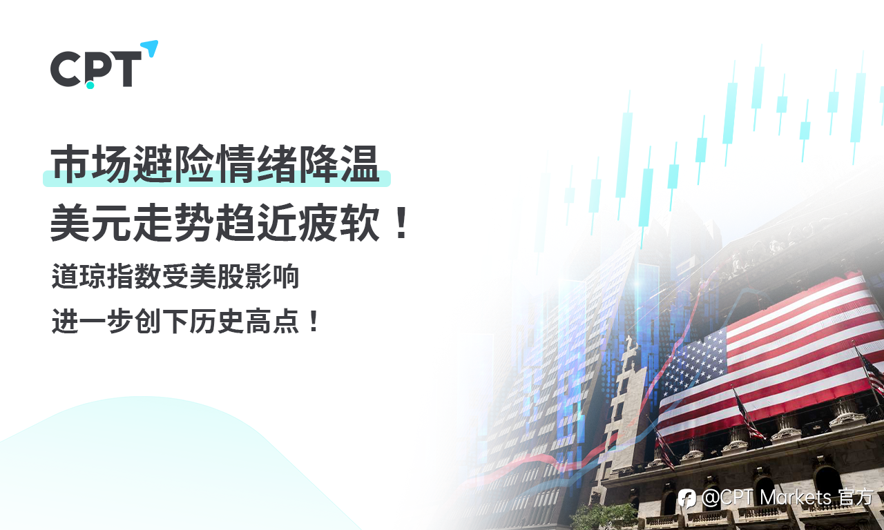 CPT Markets外汇评析:市场避险情绪降温,美元走势趋近疲软!道琼指数受美股影响,进一步创下历史高点!