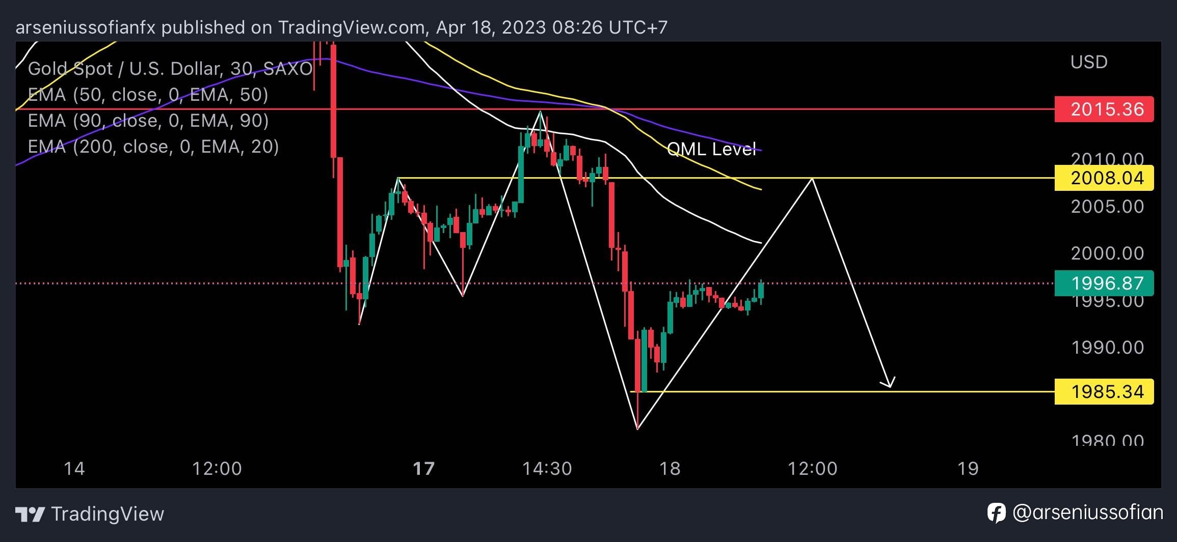 Plan XAUUSD Sell Limit 2008 SL 2015.36 TP 1985.34 Trade using Quasimodo Method *disclaimer on