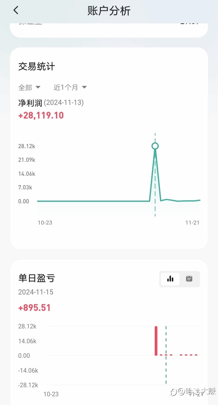 弦曜一下呵呵喝喝,最高单日收益28119元,平时日收益500左右,说话不负责任的啊,这是我最近真实情况。