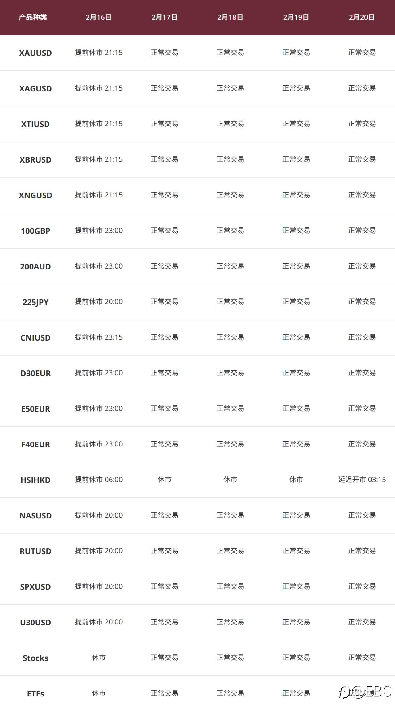 感谢您一直以来的支持与信任。为了向您提供更加稳定、流畅的交易体验,进一步提升 MT4 与 MT5 的系统性能及交易执行质量,EBC 将于以下周末时段对所有 MT 服务器进行维护: 维护时段 2026 年 01 月 31 日 13:00 至 18:00 ※上述时间是UTC+2。因此只需在UTC+2基础上加6小时即可换算为北京时间。 例如:当UTC+2为0:00,对应北京时间是6:00。 维护安排 所有 MT4 及 MT5 实盘与模拟服务器将进行停机维护;维护时段内相关服务器将暂停报价及交易;维护完成后,系统将自动恢复正常服务。 温馨提示 我们诚挚建议您在维护开始前合理调整持仓,并妥善安
