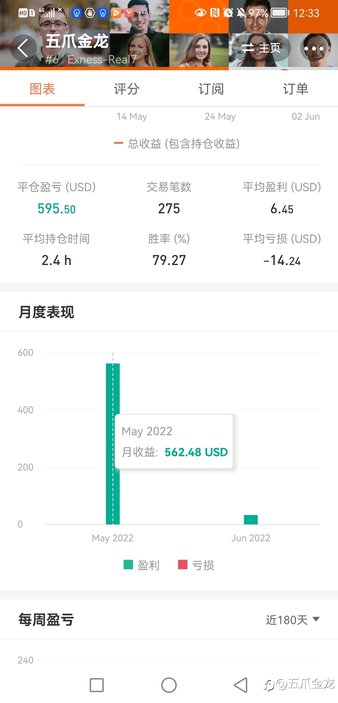 - 本金1500,经常出金,不按复利收益率300%+,风控和resse一样---超级极端行情达净值50%强制平仓修整,平时均为正常止损止盈。本账户意在打造一款风控和resse一样,收益率远高于他平均10%/月的信号源;给中小资金提供一个可更短时间内实现翻倍以上的收益而风险程度也不高的信号源。由于打造的账户月收益率远远高于100%(目前周收益定为35%-70%),所以平时的止损止盈也均会大一些,但是超极端行情有50%净值强平的风控,望大家也要理解我要大赚的同时,风控也是不可控控制得非常低的,不然风险50%只月赚10%有什么意思呢,对不?