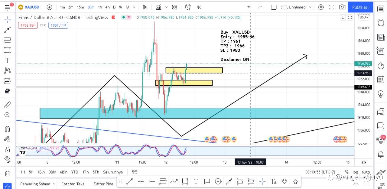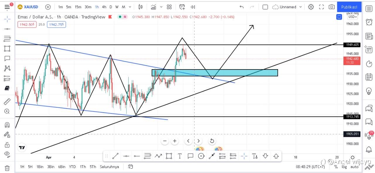 Analisa XAUUSD Dari pergerakan harga Gold seperti nya mau mencoba untuk naik di harga 1964 - 66 ... jika tembus mungkin akan capai harga 1976- 78 ,karena kalau dilihat dari analisa teknikal , gold sudah berada di titik jenuh jual dan berpotensi akan buy / Reversal.. meski terlihat hanya buy Short ,