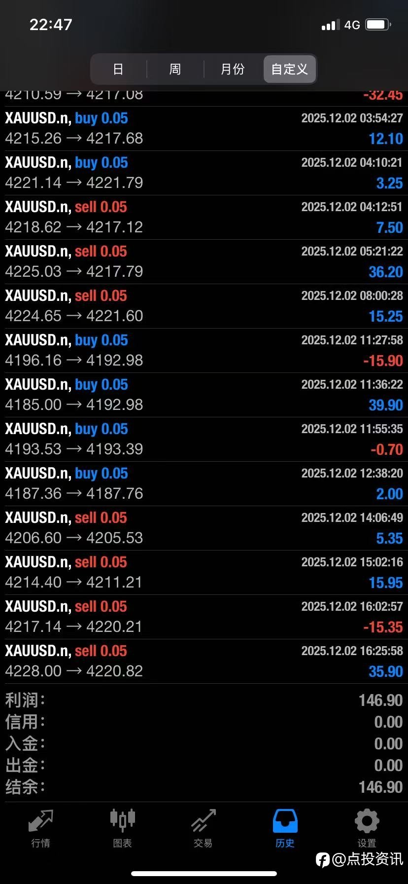 📣黄金日内手工策略 ✔单单有止盈止损 ✔拒绝爆仓 ✔12月2号收益146.9美金