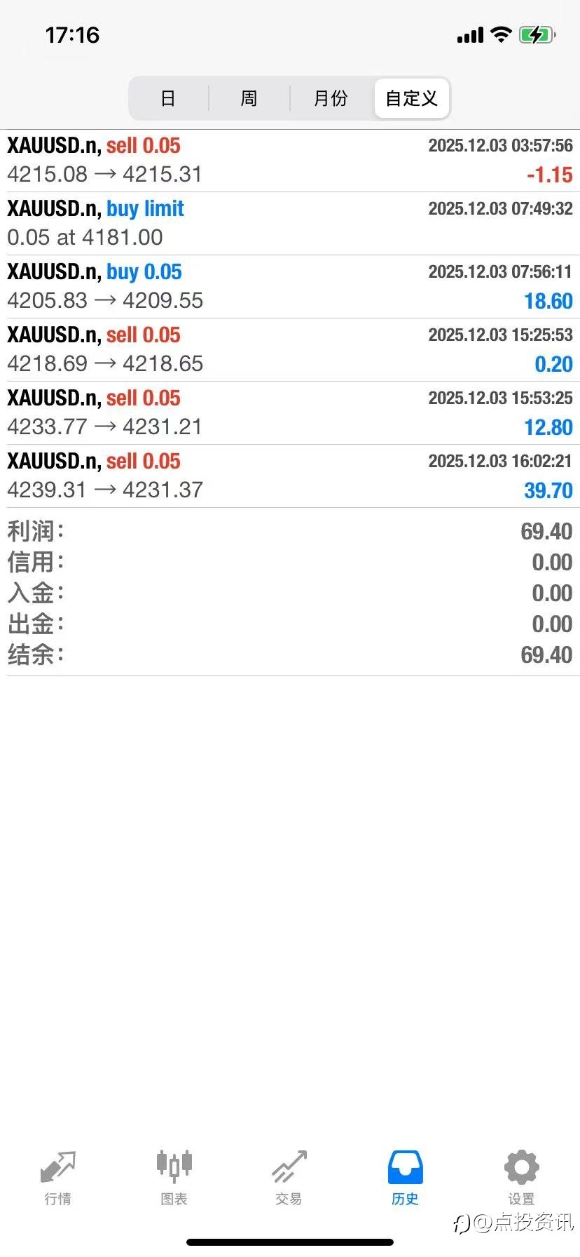 📣黄金日内手工策略 ✔单单有止盈止损 ✔拒绝爆仓 ✔12月3号收益69.4美金