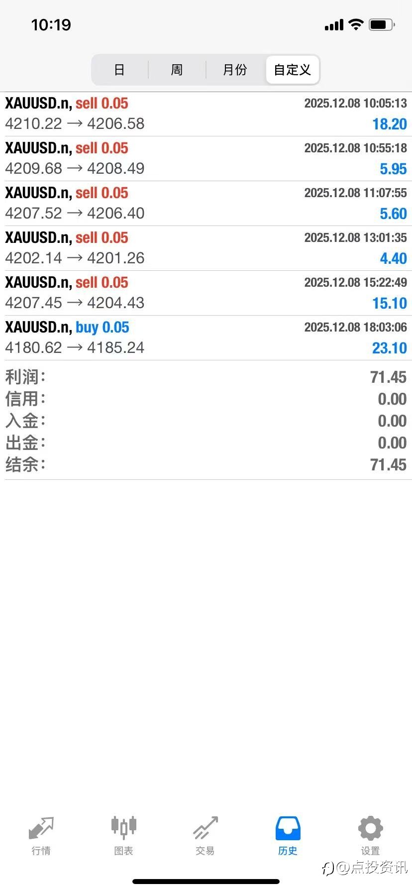 📣黄金日内手工策略 ✔单单有止盈止损 ✔拒绝爆仓 ✔12月8号收益71.45美金
