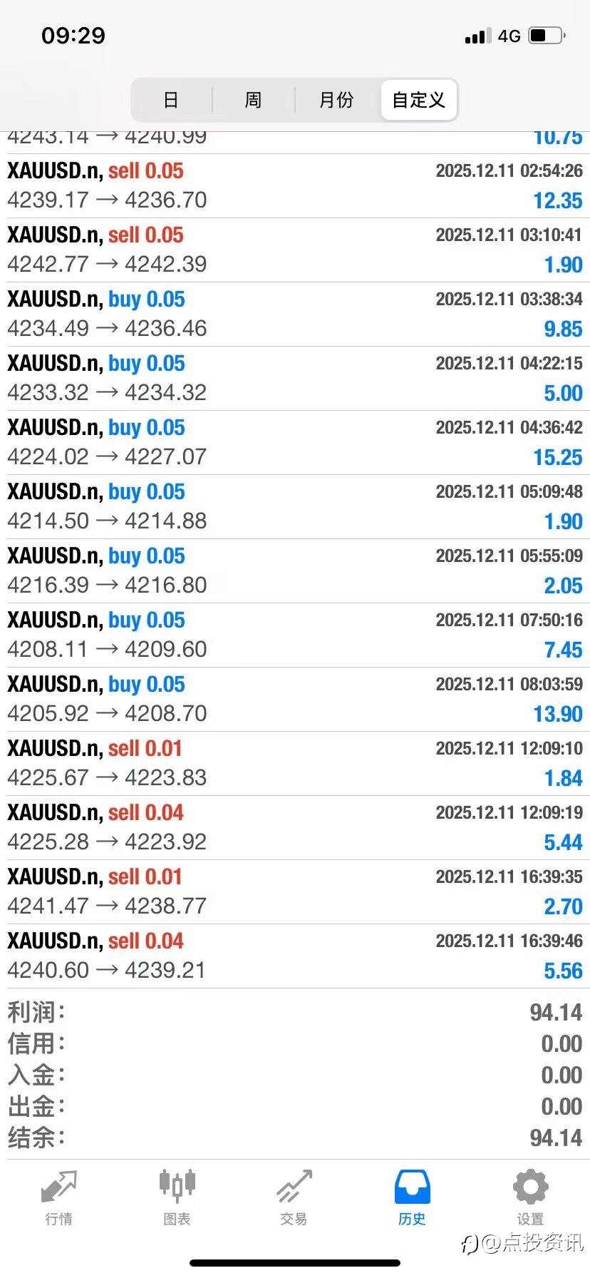 📣黄金日内手工策略 ✔单单有止盈止损 ✔拒绝爆仓 ✔12月11号收益94美金