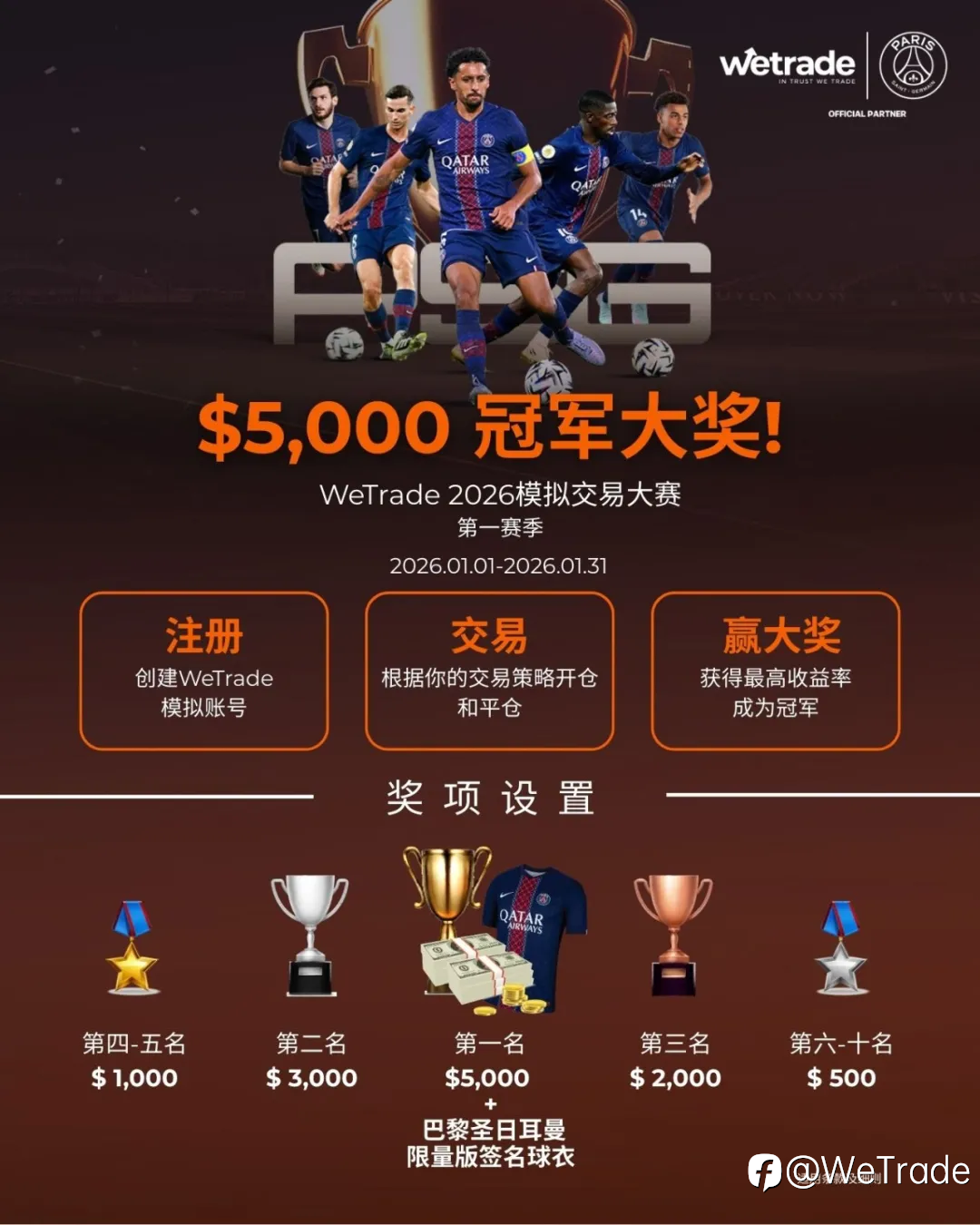 行情剧烈震荡,巅峰对决全面升温 热度持续攀升,竞争全面升级。WeTrade 2026 模拟交易大赛第一赛季自开赛以来,迅速点燃全球交易者的参与热情。来自世界各地的交易高手同台竞技,在真实还原的市场环境中展开智慧与执行力的正面交锋。随着赛程过半,榜单更迭频繁,差距不断收窄,大赛已正式进入白热化冲刺阶段——每一次决策,都可能改写排名格局。 多重变量交织,极端行情下见真章 进入2026 年,全球金融市场持续处于高波动状态。地缘政治不确定性、主要经济体政策博弈、通胀与增长预期反复拉扯,使得股指、黄金、原油、数字资产等品种波动显著放大。趋势与反转频繁切换,为交易者提供机会的同时,也对风险控制与执行纪律提