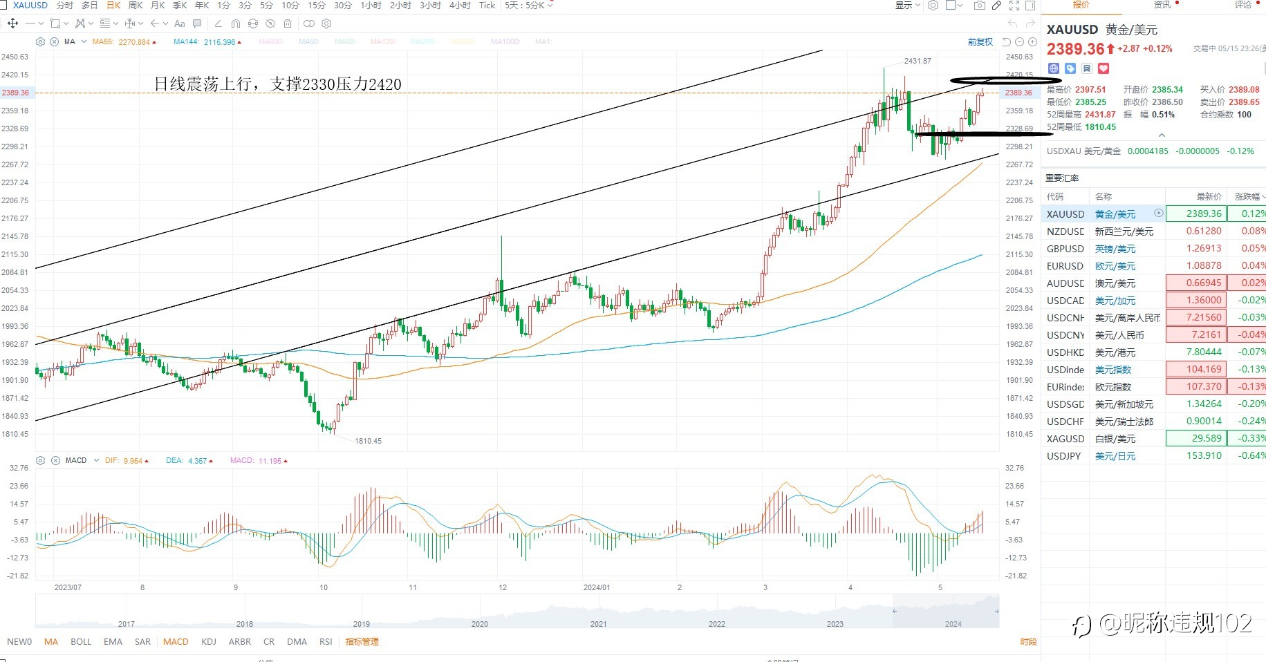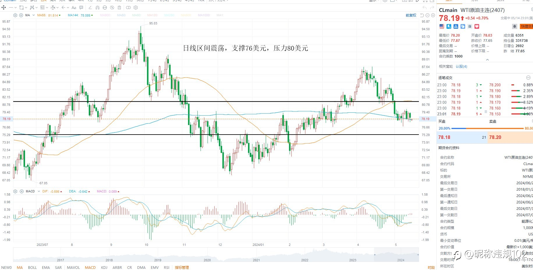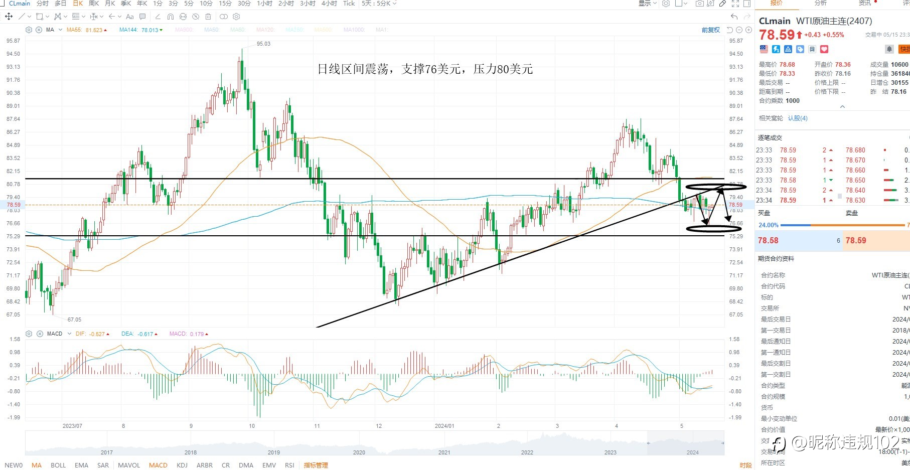 KCM Trade ---黄金原油行情分析 2024年05月15日 美元指数小幅回落,依然在多头区间之内,虽然PPI数据超预期,但因为3月下修基数之后使得4月预期走高,基本面上暂无明显得变化,所以美元维持区间震荡,等待市场对于美...