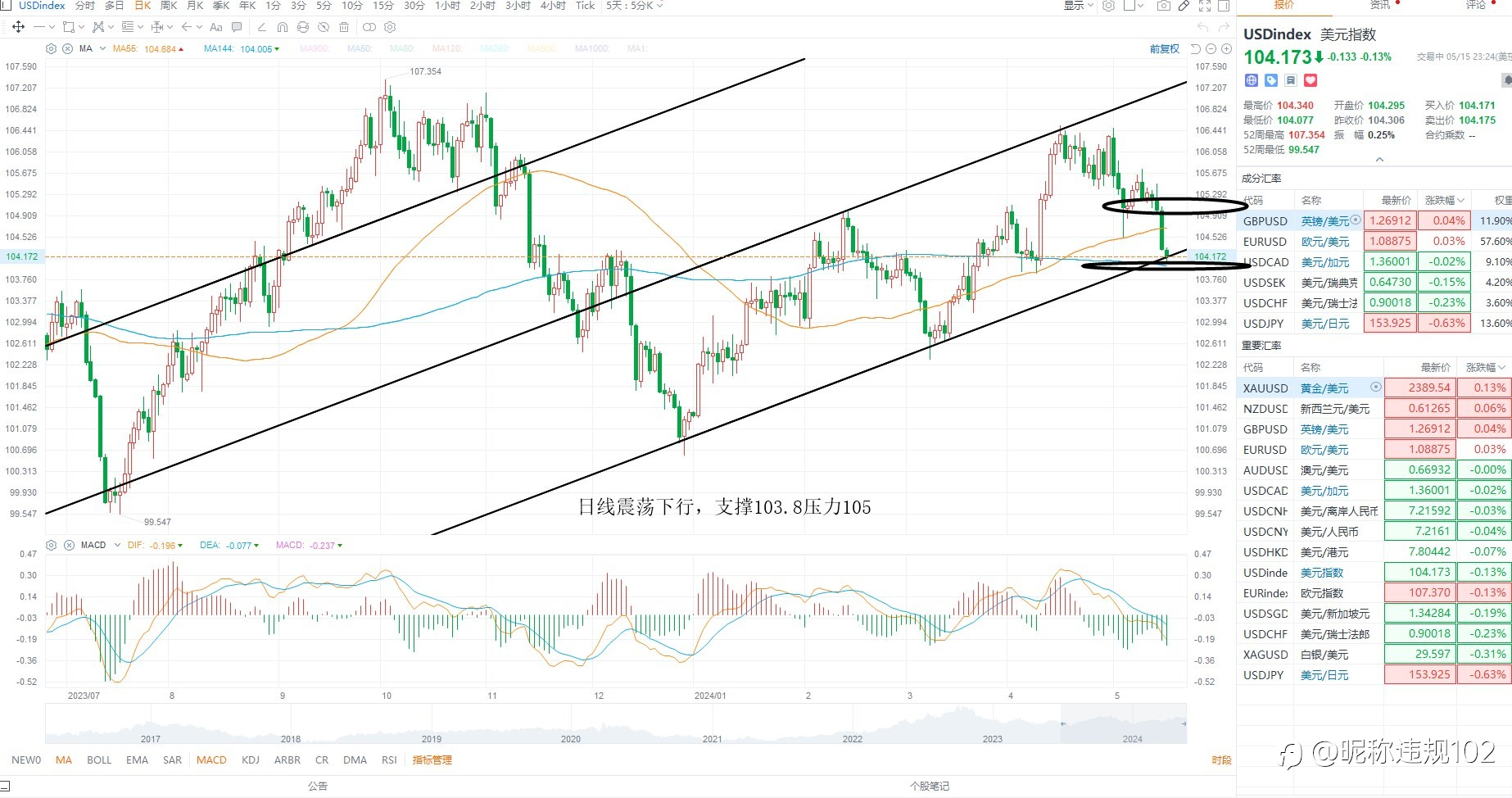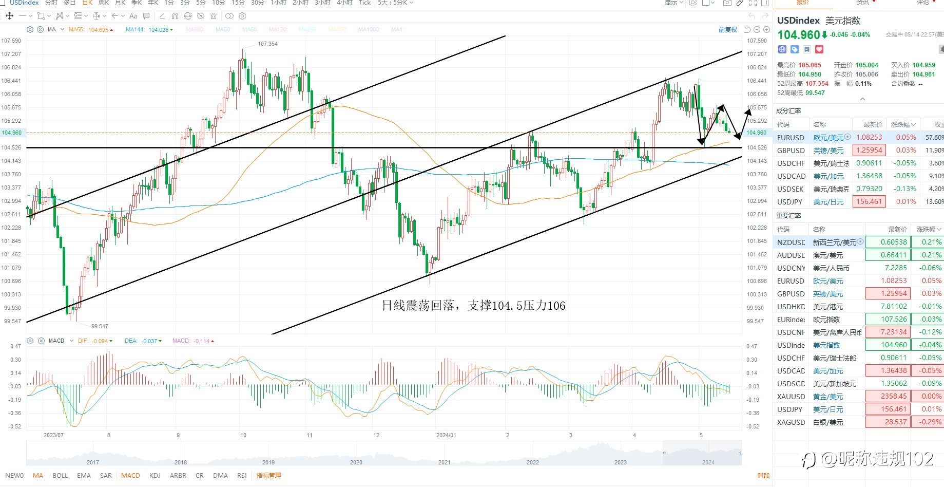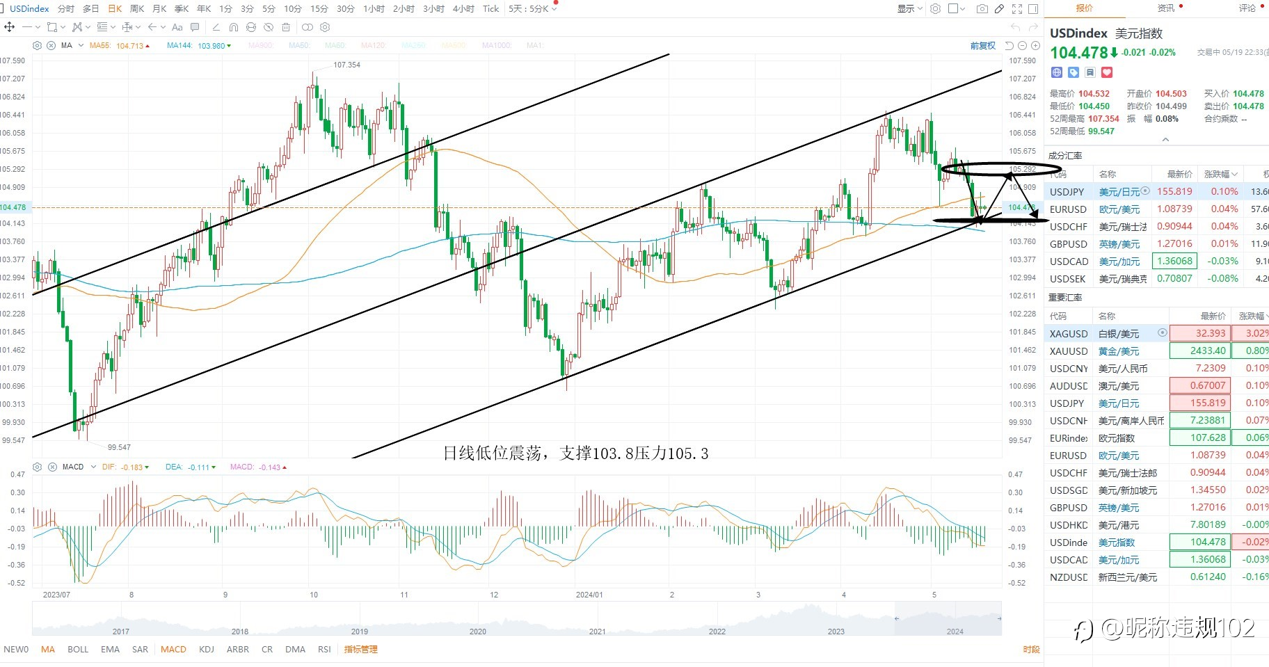 KCM Trade ---黄金原油行情分析 2024年05月20日 美元指数震荡回踩,今日没有基本面数据指引,大概率还是延续周五技术走势为主,基本面上美元指数存在继续下行的可能性,一方面是美联储降息预期升温,其次是欧元区降...