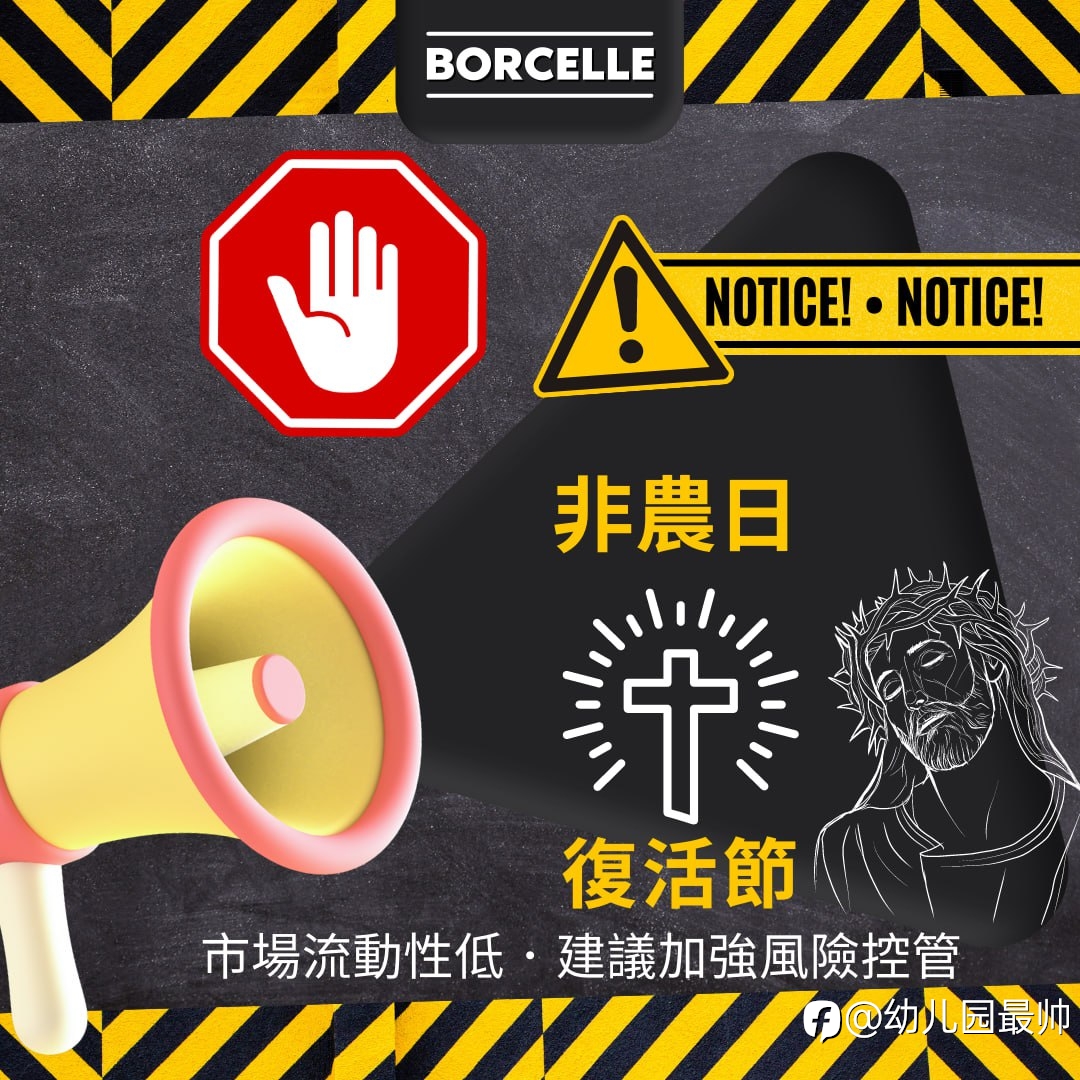 耶稣受难日除外汇以外绝对部分产品今天就开始休市 , 晚上非农数据照常公布届时市场影响可能留到周一开盘反应! 格伦外汇四月限定好康活动已上线,想了解的朋友都可以讯息我