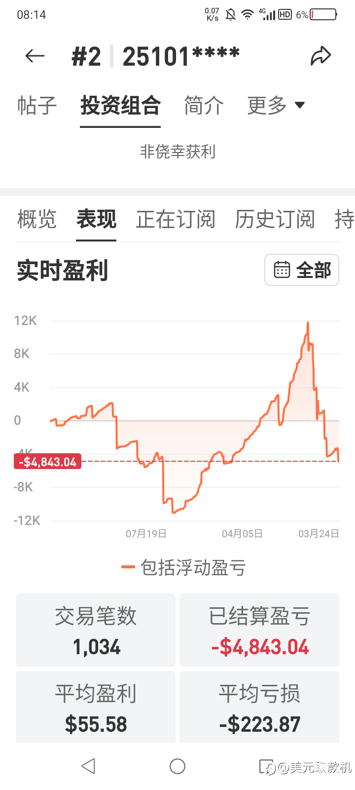 这位选手本来赚一万多美金的,结果一个大回撤回到解放前了,一定要控制仓位,尽量轻仓操作别扛单。