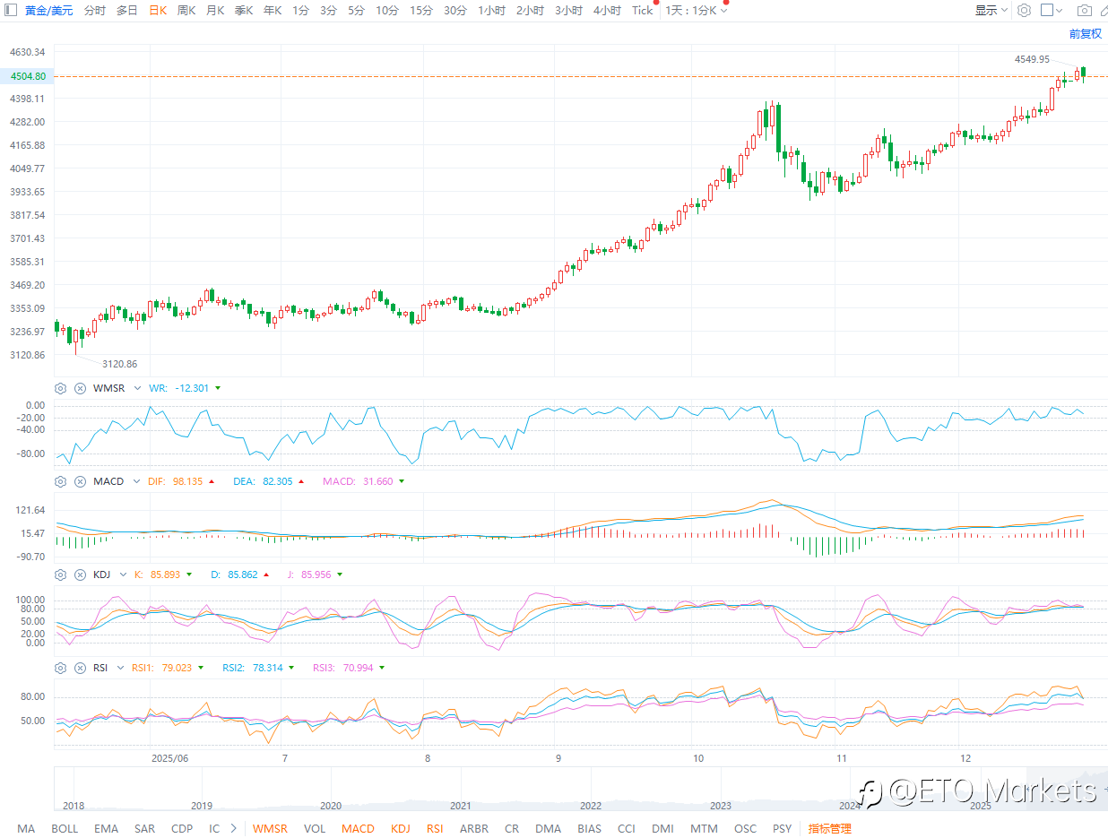 ETO Markets 黄金日报|年内大涨 72%,金价 4500 美元上方震荡