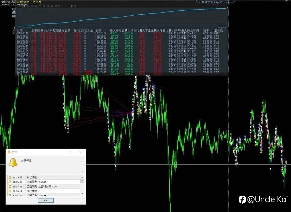 今日3/18黃金算法交易策略完成目標EA自動結束 4小時結束 收工 每日0.15% 月化3% 年化36% 不過度交易 控制自己的人性的貪婪 穩穩的增長