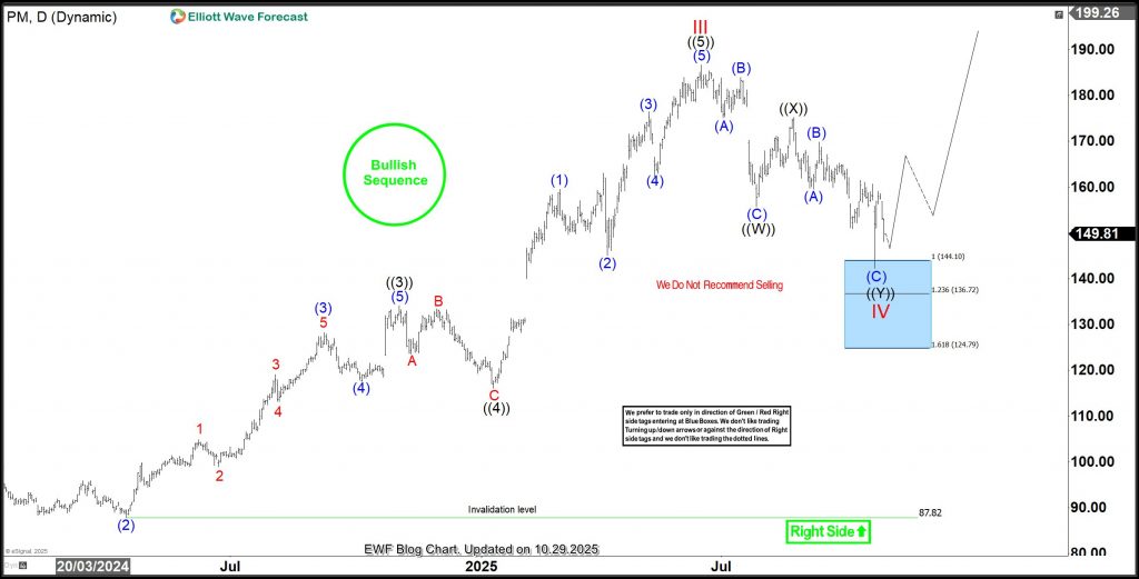 Philip Morris International Inc. (PM) may have ended the over 4 months bearish cycle from June 2025. The current rebound happened at the blue box where the October 29 blog post alerted traders to go long. After reaching the first target, why do I think it could reach $215 in the coming days or weeks