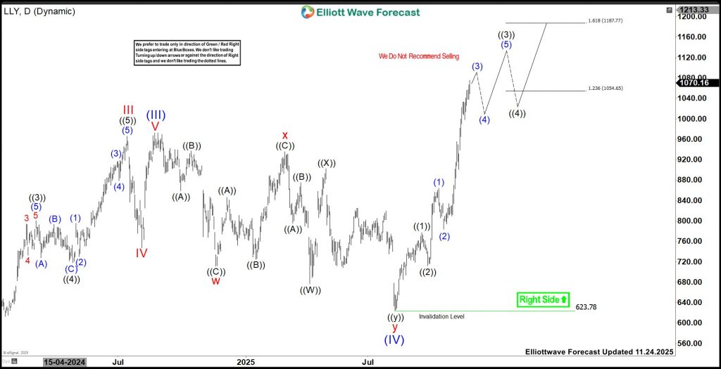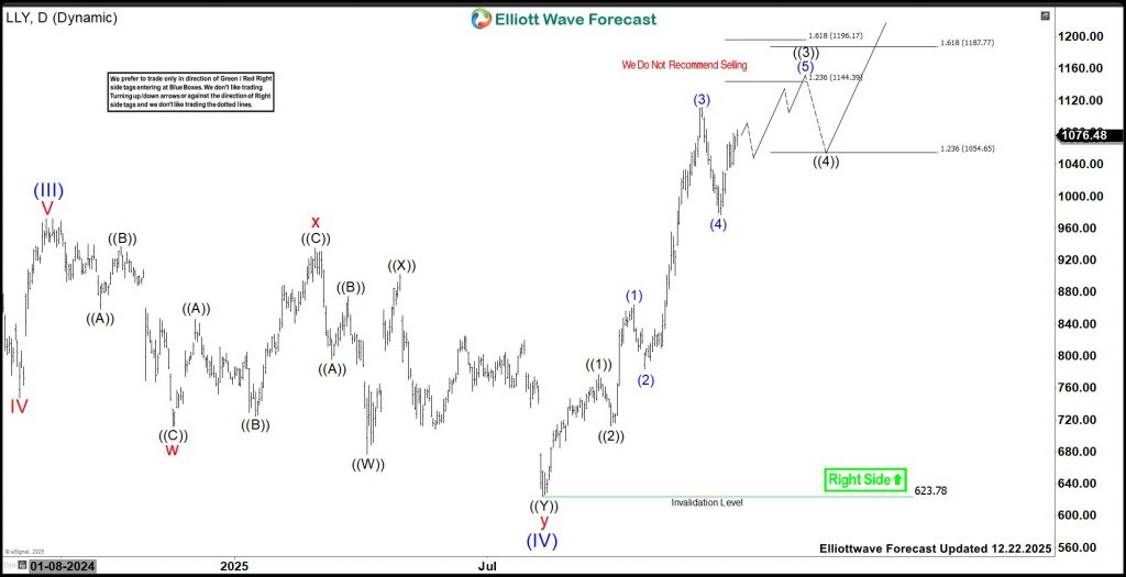 Eli Lilly & Company (LLY) discovers, develops & markets human pharmaceuticals worldwide. It comes under Healthcare sector & trades as “LLY” ticket at NYSE. As discussed in last article, LLY favors rally in ((3)) of impulse I within August-2025 rally. It favors upside between $1144.39 – $