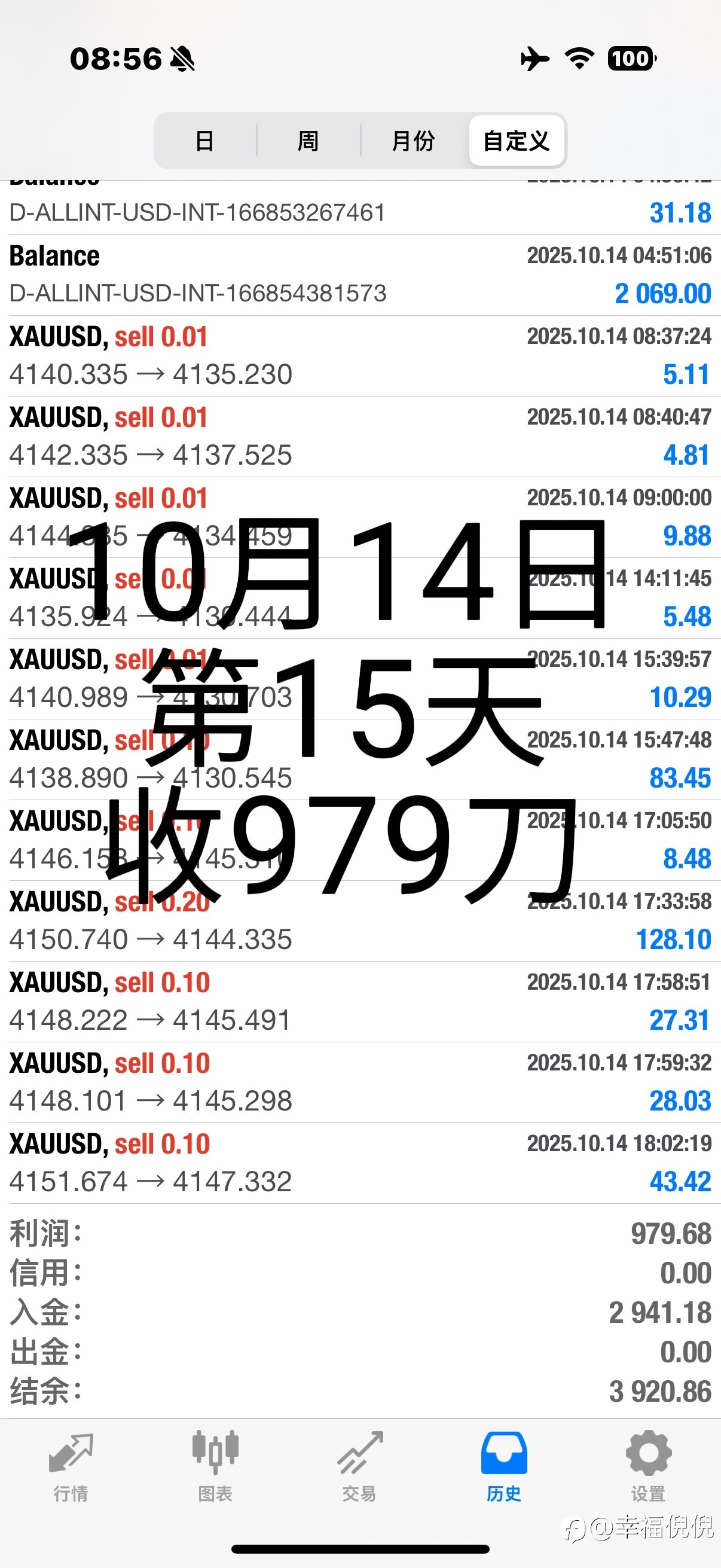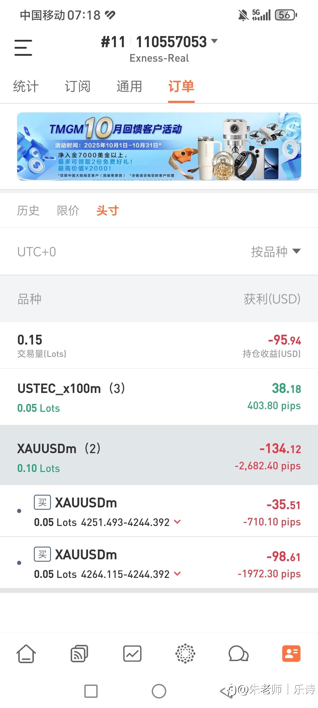 10月21日,黄金大跌300个点,将近6%,很多人在大跌中乘风破浪,他就是其中一个传奇。 他在4368高位7000美金重仓1手,盈利顺势加仓2手,当时群友有说,下看4225止盈,你是要发,他微微一笑,笑你格局太小。于是当天行情真的大跌。他的账户也从7000到了5万。 他依靠4190的前低,做起了高抛低吸,5手单子随意进出。行情很配合,他的账号很快到达了10万 他还是延续前面的策略博行情反弹,依靠4000为防线,行情越跌,他越买。10万美金15手黄金多单,轻松持有,从亏本扛到盈利,轻轻松松,视金钱如粪土,于是盈利金额很快来到20万。 他是谁?千呼万唤始出来,他就是我们的真神(秦皇汉武唐宗宋祖),