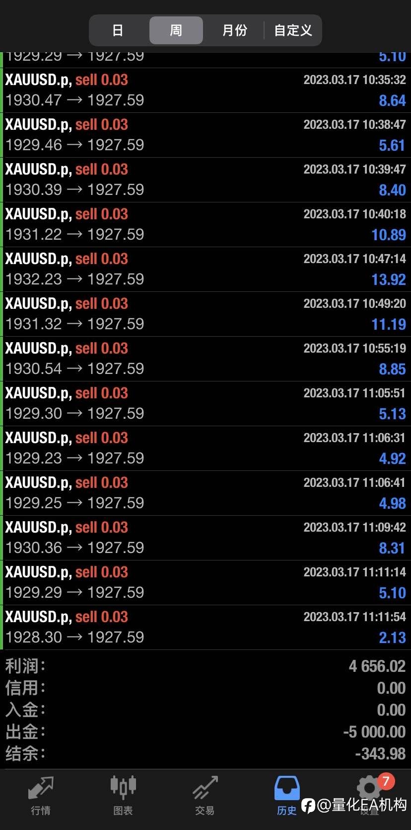 【短线黄金一次一单-EA】做短线交易,带移动止损,胜率高,盈亏比合理,止损,范围设置合理有效提高成功概率
