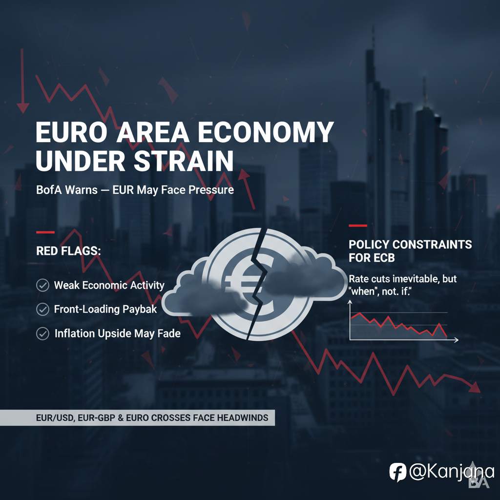 เศรษฐกิจยูโรโซนเริ่มสั่นคลอน! BofA เตือน “ยูโรอาจเจอแรงกดดันต่อเนื่อง” ธนาคาร Bank of America (BofA) ออกมาเตือนว่า เศรษฐกิจยูโรโซนกำลังอยู่ในจุดเปราะบาง หลังค่าเงินและอัตราดอกเบี้ยที่แท้จริงปรับตัวสูงขึ้น จนกลายเป็น “การเข้มงวดทางการเงินโดยไม่ตั้งใจ” เทียบเท่ากับการขึ้นดอกเบี้ยของ ECB อีก 1–2 ครั้ง