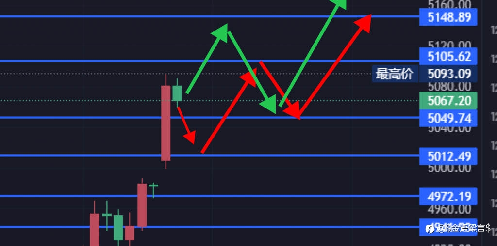 黄金周一如期突破5100差急速回落,回调继续多; 2026-01-26 星期一 黄金欧盘后多空策略 ☆发文有延时,最终以实盘策略及现价单操作为主,请大家持续关注; ☆策略单分仓入场,总仓位不得超过20%; ★形态分析及日内...