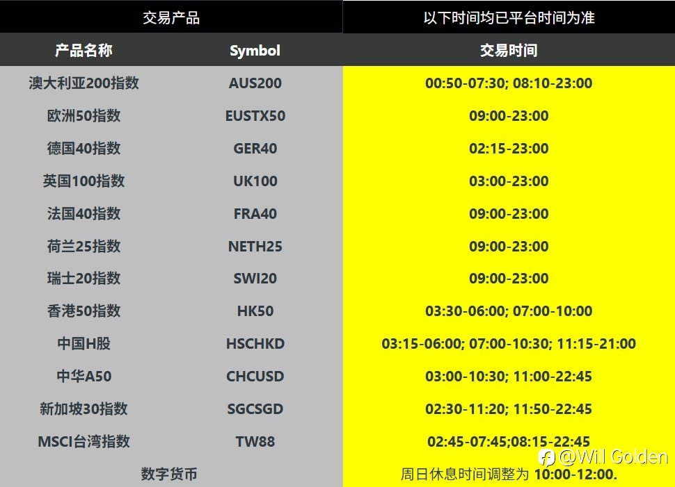 2025/11 美国夏令时结束——交易时间调整通知 因美国结束夏令时,2025/11/02–2026/03/07 期间相关产品的交易时间将顺延/调整。 MT4/MT5 服务器时间亦由 GMT+3 → GMT+2 生效。 适用期间:2025/11/02 至 2026/03/07 ...