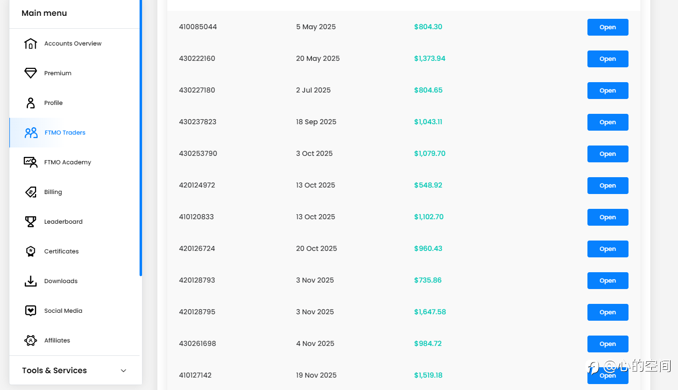 2025年的3月6号,我考过了TTP的一个5万自营账号,当时2月份身上就只有300多美金交易资金了,最后一博报考了考试,所幸考过了,到今天为止采用滚雪球的模式,一边交易一遍考试,到今天积累了30万的TTP分润账号,80万的FTMO分润账号,其中艰难难以表述,很多夜晚难以入眠,交易这条路太难了,唯有坚持,唯有自渡,也认识了很多志同道合的朋友,比如在小群里和砸锅卖铁兄弟一年的交流受益良多,交易中很多经验教训,交易外很多陷阱,我都经历过,就这么一路坎坎坷坷的走了过来,25年在自营交易的磨炼,主要是磨炼对回撤控制的把握,还是效果杠杠的,自营交易有很多限制也有很多不好的地方,但是就一条对控制回撤的红线我