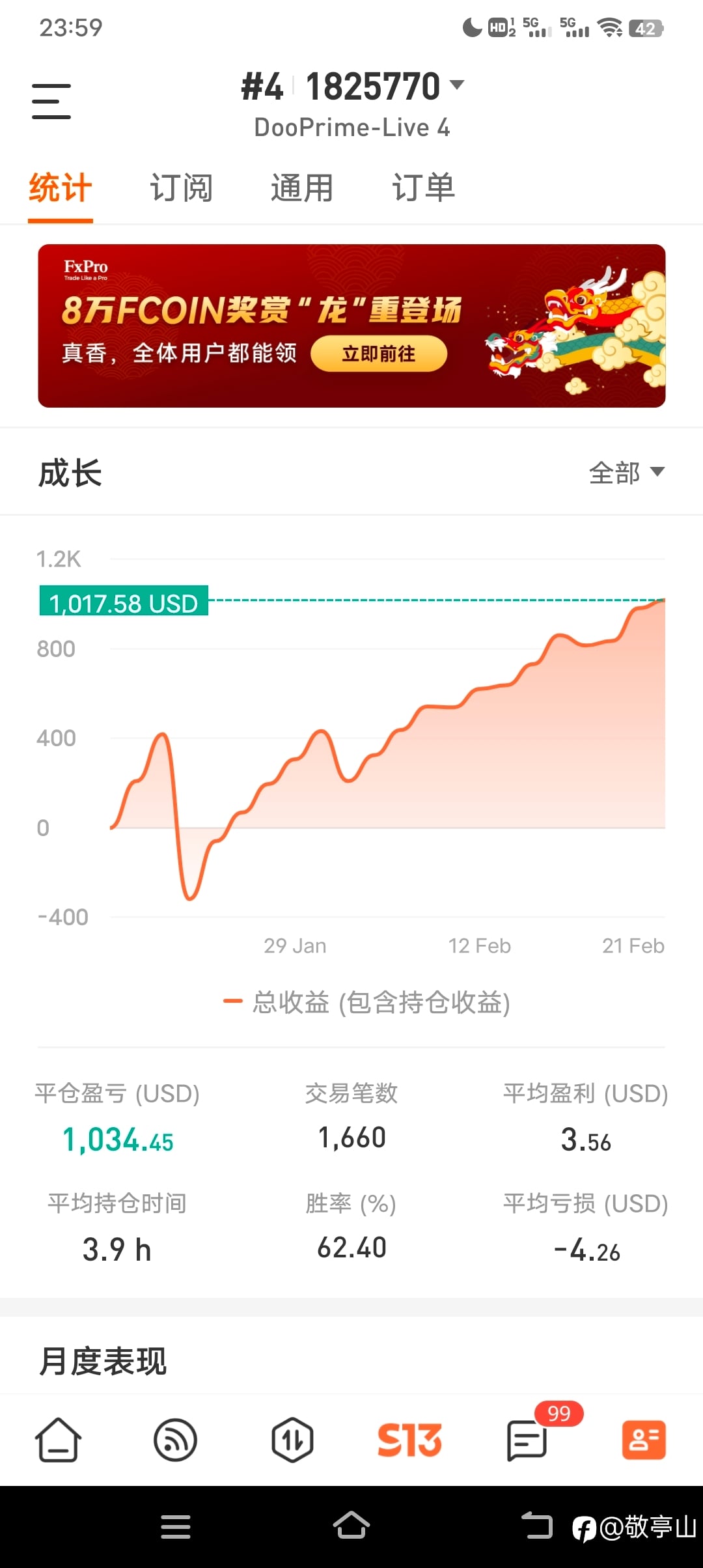 这个账号是稳健型爆利策略,盈利效果不错,目前盈利2500,感兴趣的汇友可关注一下,做好风控不会爆仓的。