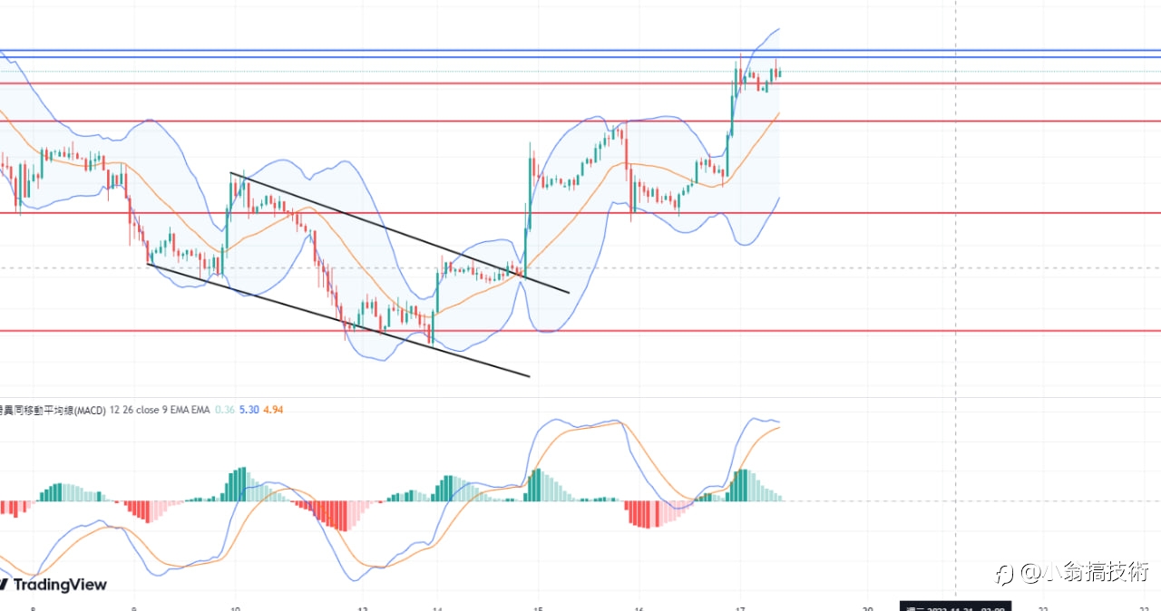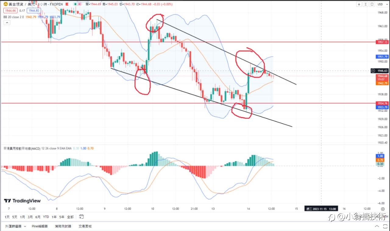 黃金有明顯通道 在知道今晚有重大數據的前提下 為了安全性 可以避免沒必要的短線 不過如果單以技術面來看的話 高空低多 在通道區間交易確實會是比較簡單的交易方式 在頂部與底部都可以做點小波段 黃金目前我是稍微偏...