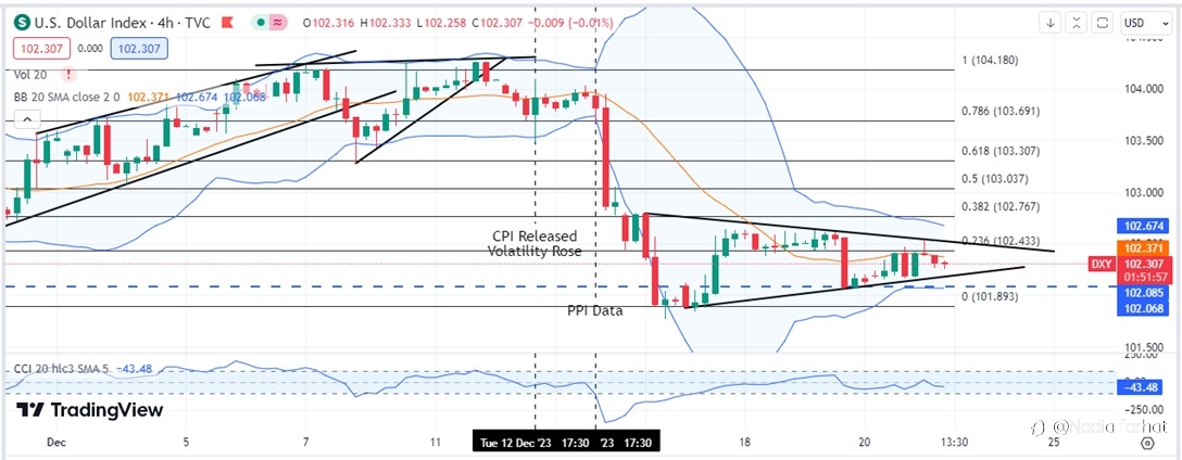 *US Dollar seems to be taking corrections from projected resistance levels* • The US Dollar is witnessing minor weakness in the Asian session on Thursday, after testing the immediate resistance at 102.43 (fib level 0.236). • The index is trending lower in the selling zone and moving towards im
